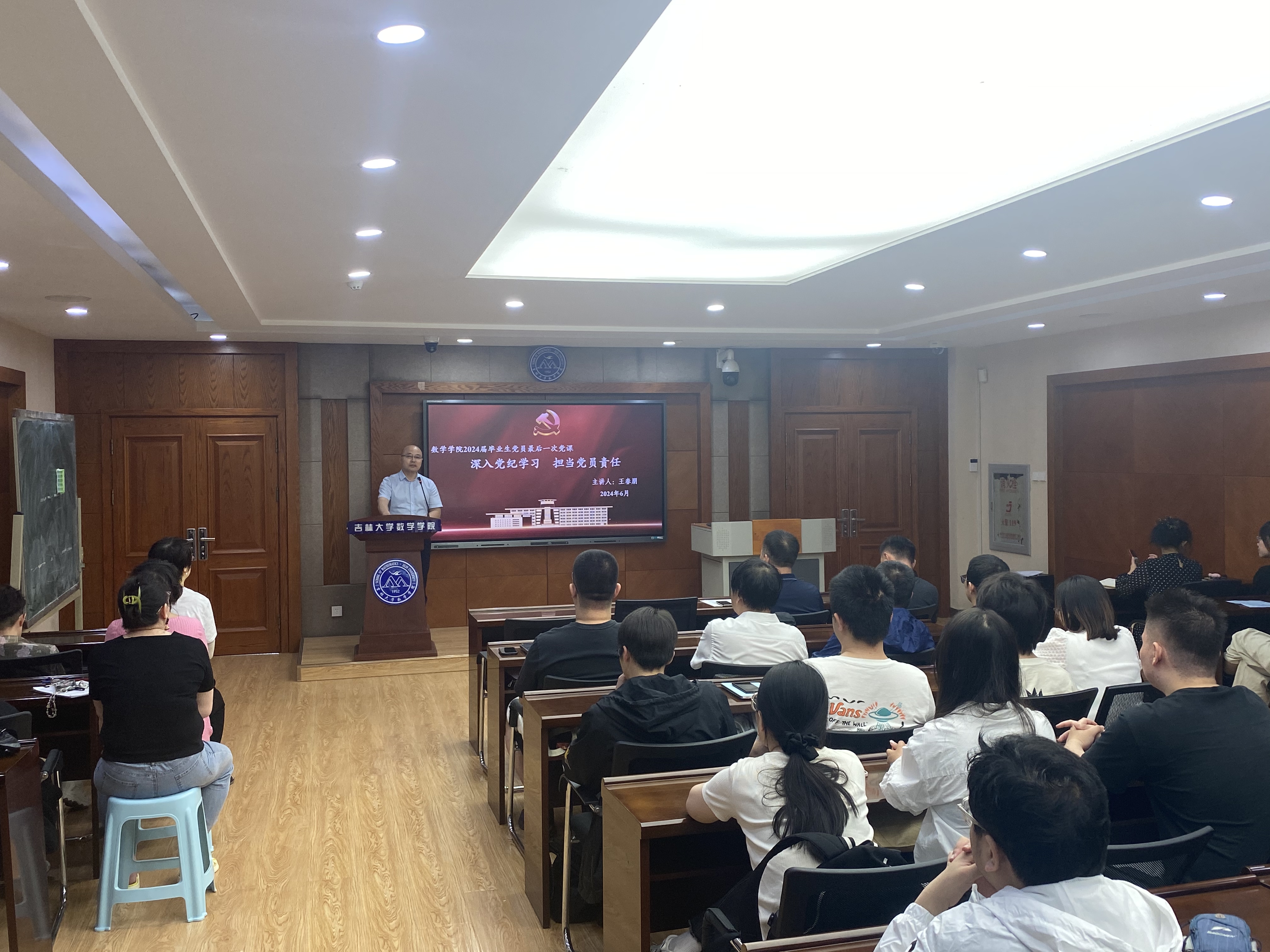 为推动党纪学习教育走深走实,教育引导全体毕业生党员增强纪律意识,在知敬畏、存戒惧、守底线中夯实理念信念之基,在推进强国建设、民族复兴伟业中展现青春作为、彰显青春风采、贡献青春力量。6月17日,数学公司党委书记王春朋为2024届全体毕业生党员讲授了毕业前“最后一次党课”。