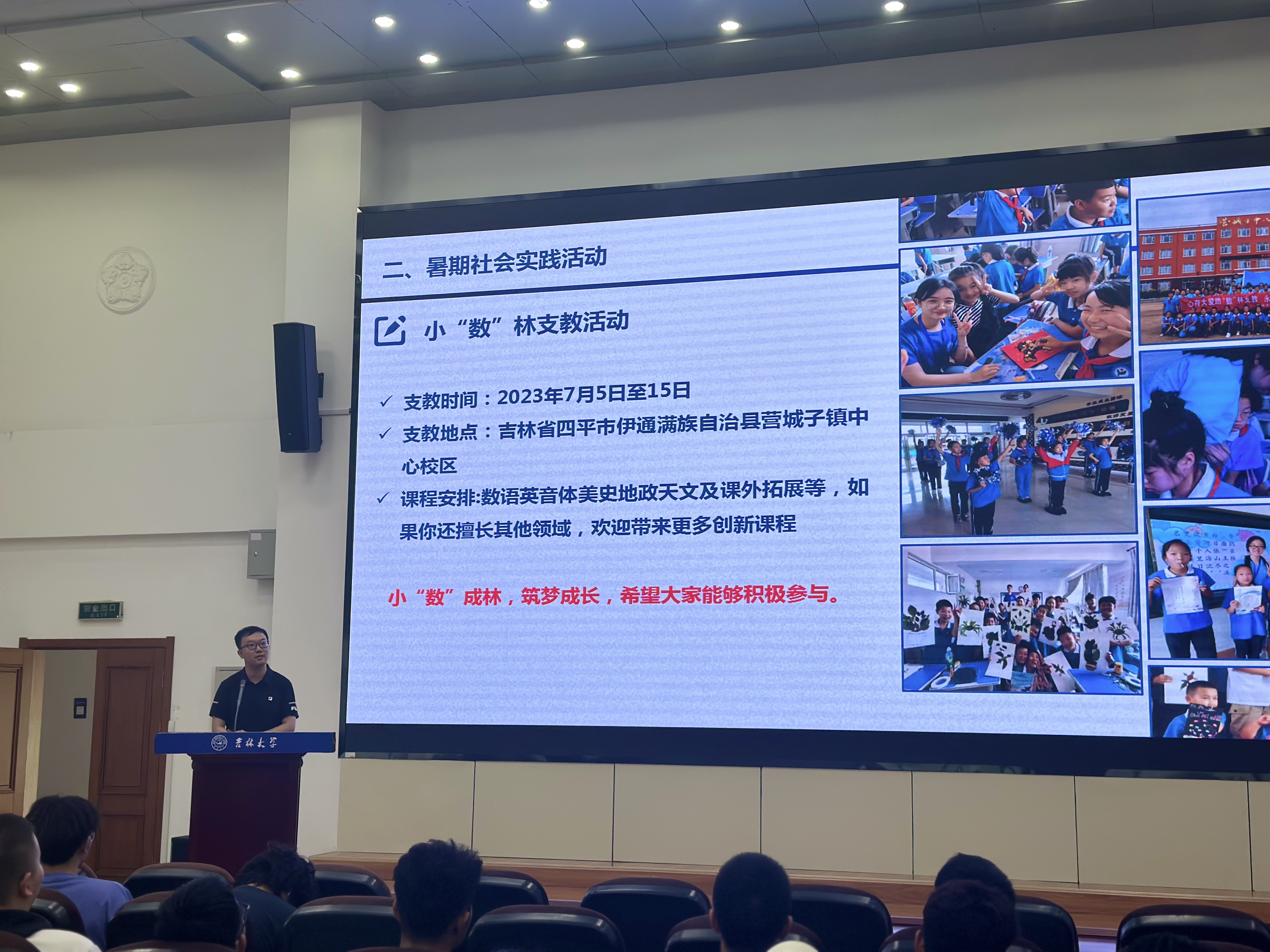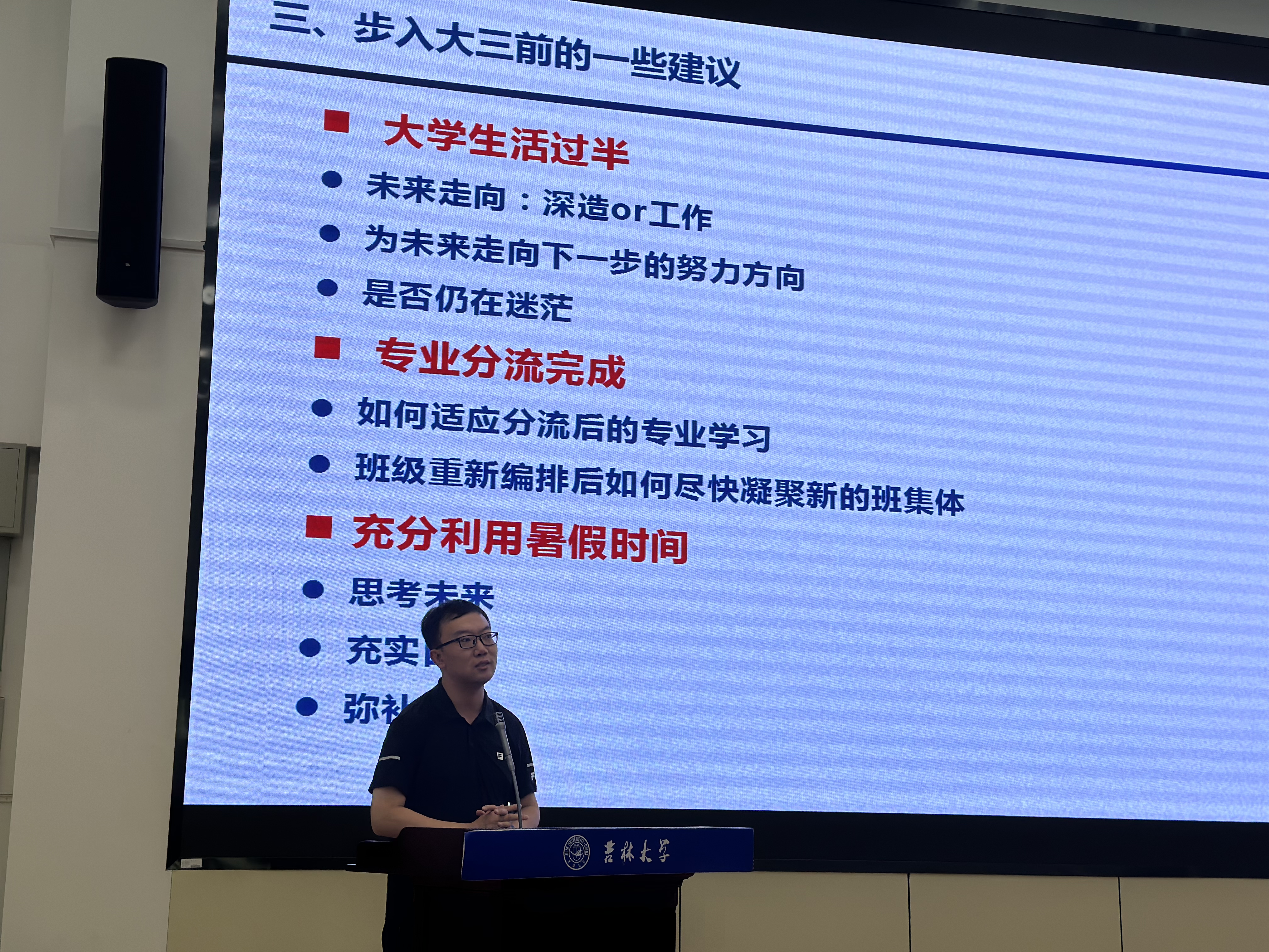 会上,陈晓宇老师带领全体同学共同学习了《公海gh555000aa线路检测本科员工违纪处分规定》《公海gh555000aa线路检测本(专)科员工考试纪律规范》等相关规定,并通过警示案例,向大家阐明违纪行为的严重后果,强调了员工违纪及解除处分文件将存入个人档案。随后,陈晓宇老师为全体同学介绍了公司暑期社会实践活动的相关安排,讲解了公司课外八学分的有关规定,并重点向全体同学宣讲了公司传统暑期社会实践项目——小“数”林支教团,邀请有兴趣的同学积极参与。最后,结合2021级全体同学即将进入大三学习阶段的时间节点,陈晓宇老师为大家提供了一些步入大三前的建议,一是希望大家能够尽早明确未来走向并为之实施努力;二是希望大家能够尽快适应专业分流后新的班级环境及新的学习内容;三是希望大家能够充分利用暑期时间来思考未来、充实自我并弥补不足。