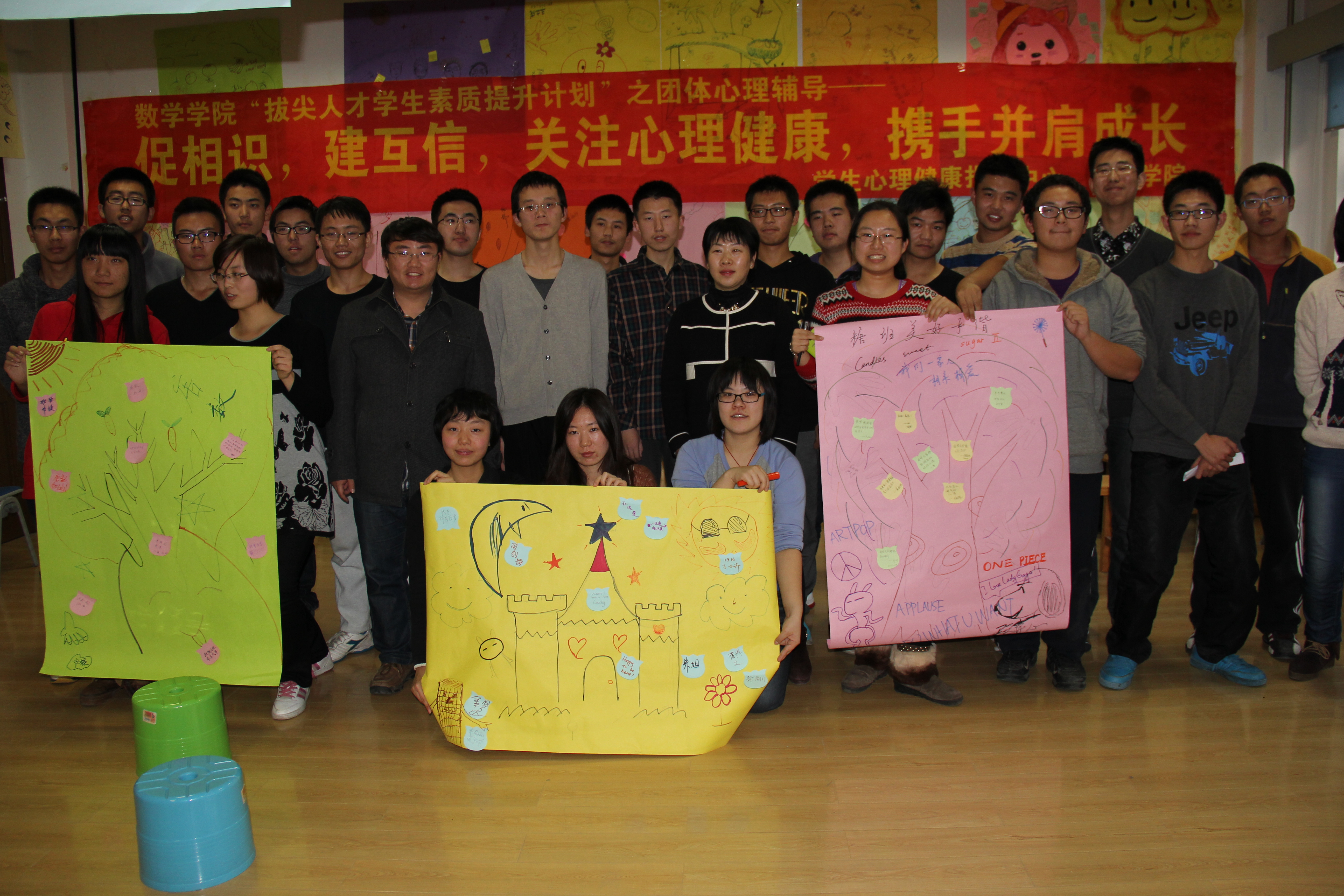 11月14日下午1:00,2011级和2013级唐敖庆班的同学们参与了由公海gh555000aa线路检测和员工心理健康指导中心组织的团队心理辅导活动。本次活动主题为“促相识,建互信,关注心理健康,携手并肩成长”。
