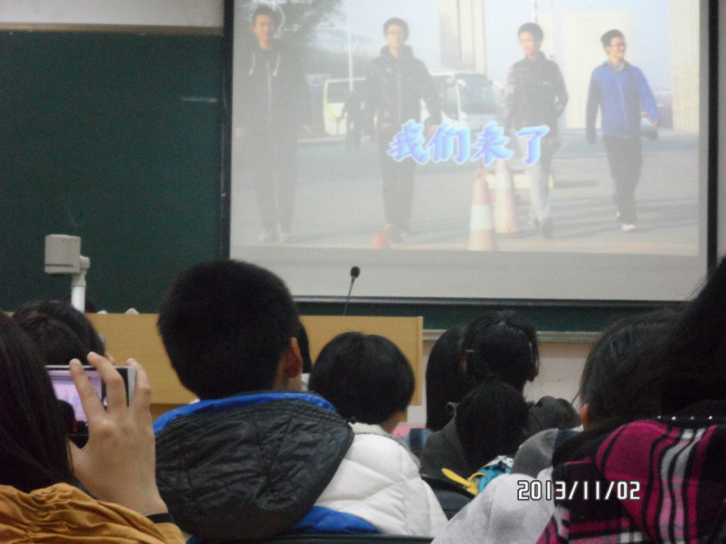 11月2日晚18:00,由公海gh555000aa线路检测社联宣传部为2013级新同学举办的,“扬青春,展风采”班级VCR大赛在数学楼一楼报告厅举行。吸引了许多同学前来观看。