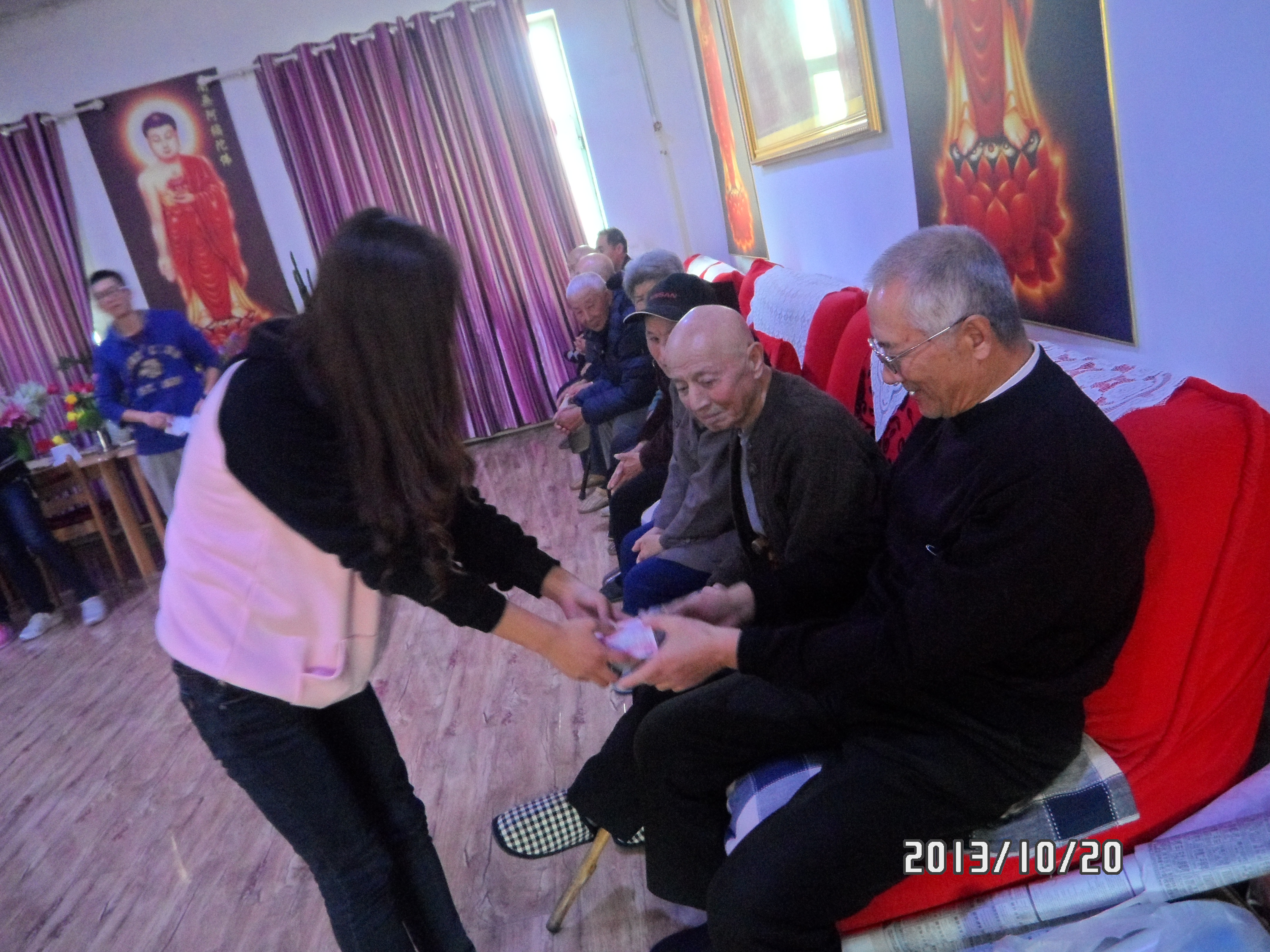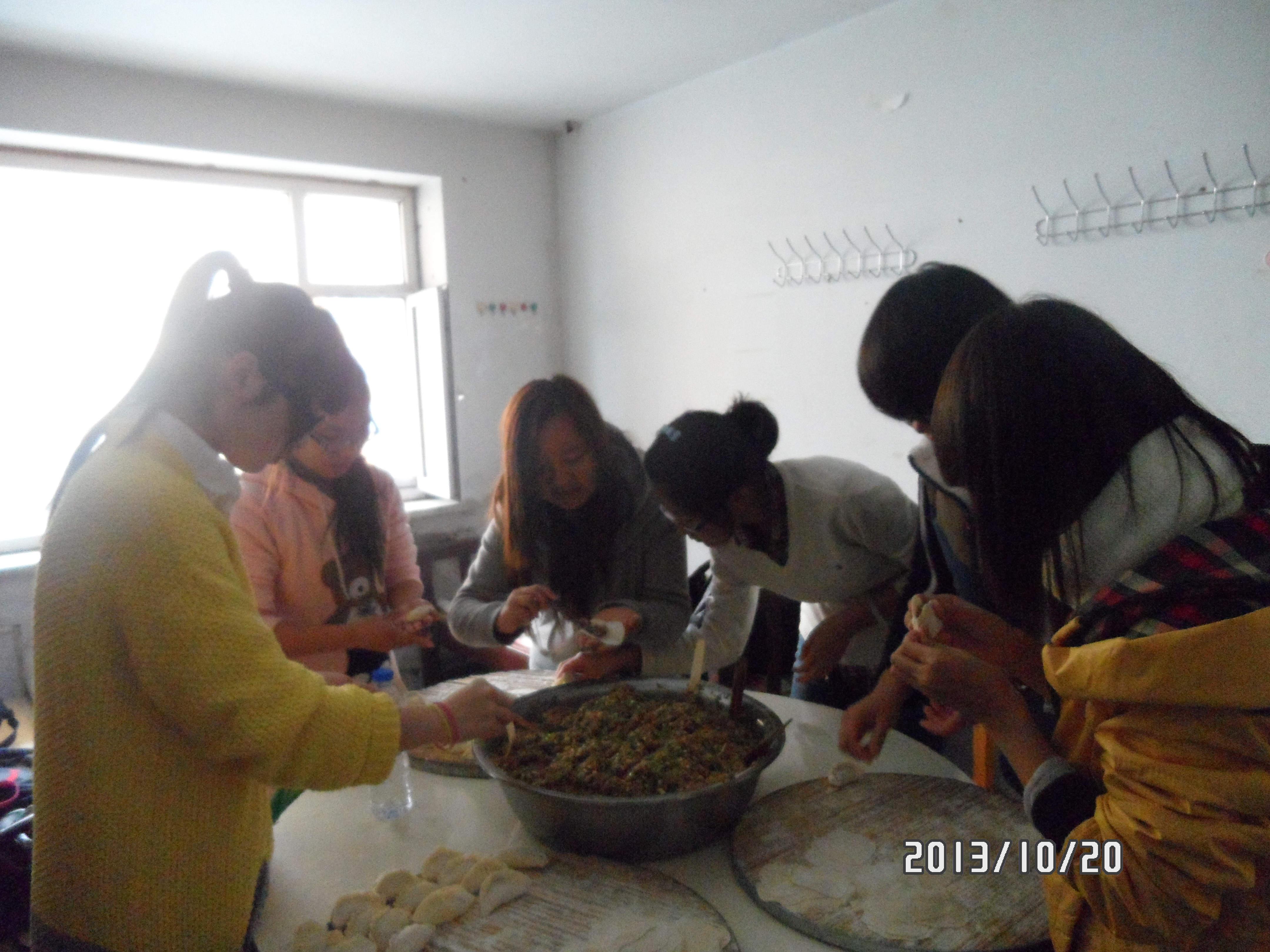 午饭时间,同学为老人包了饺子。饭后,志愿者又为老人表演了军体拳、二人转、猜红歌名等节目。同学们充满热情和活力的表演感染了在场的所有人,有一位老奶奶在同学手风琴的伴奏下演唱了一首《莫斯科郊外晚上的月亮》,敬老院经理也为大家唱了一首《感恩》,以此来教导同学们要谨记孝道。活动结束之际,同学们祝愿老人们健康长寿,与老人们依依惜别。