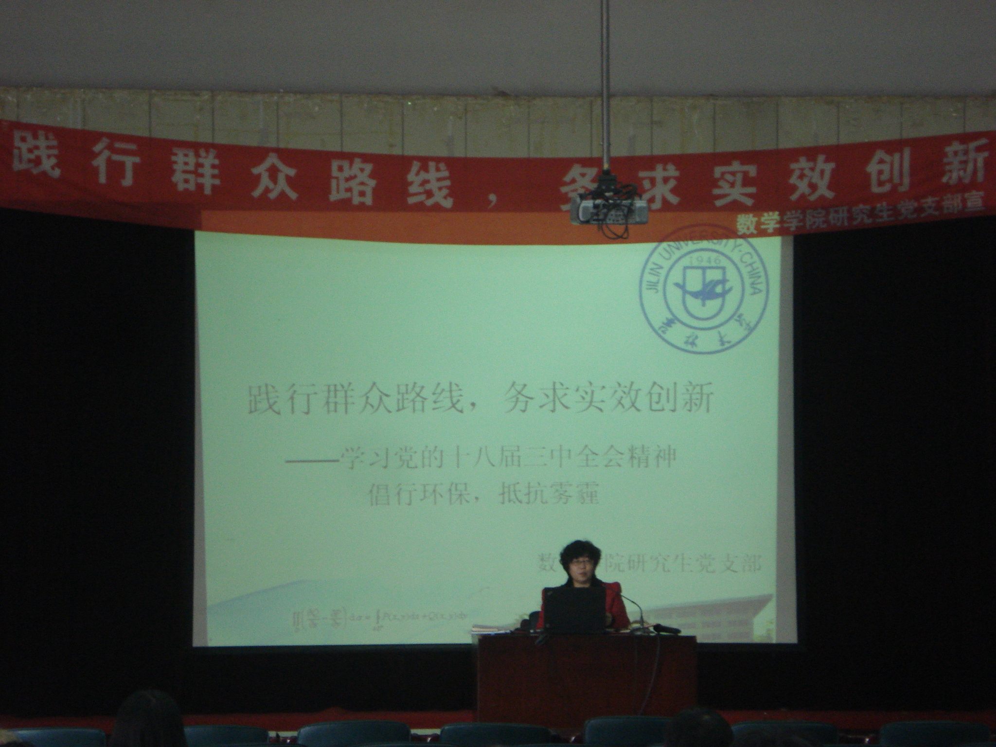 公海gh555000aa线路检测于2013年12月4日上午10点,在数学楼二楼报告厅召开“践行群众路线,务求实效创新”研究生党支部会议。会议由数学公司党委副书记王欢老师主持。公海gh555000aa线路检测全体研究生党员和积极分子参加了此次会议。