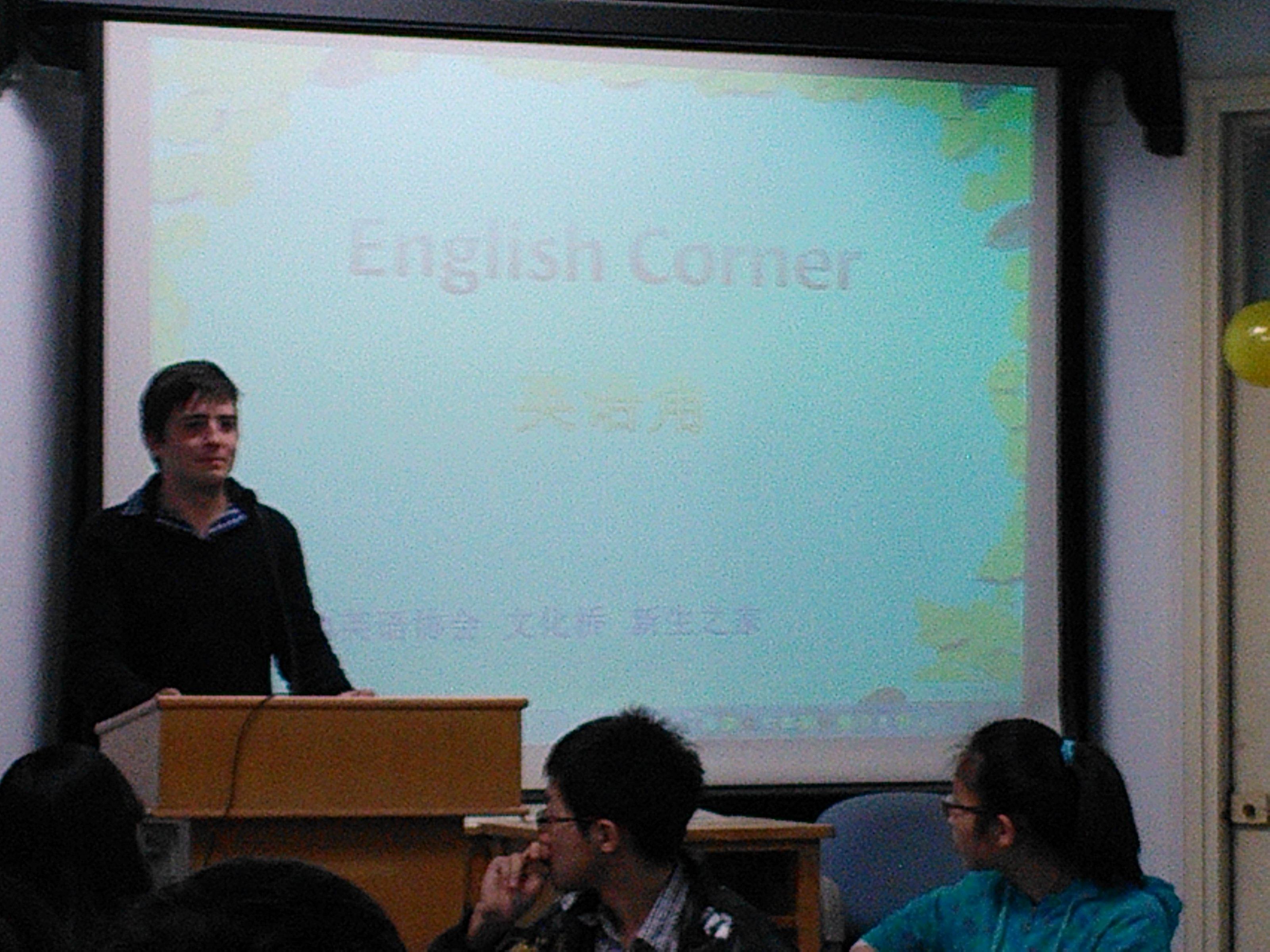 4月13日晚六点,由公海gh555000aa线路检测新生之家及外语公司的两个社团文化桥、utopia英语协会共同举办的英语角活动如期举行。