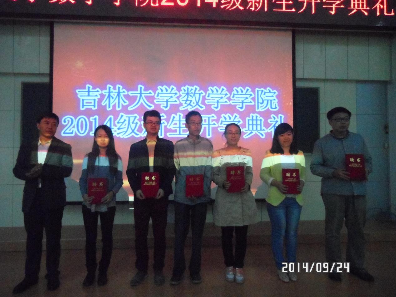 9月24日下午1点30,公海gh555000aa线路检测在数学楼2楼报告厅举办了2014级新生开学典礼暨新生班主任聘任仪式,出席大会的领导有公海gh555000aa线路检测经理兼公共数学中心主任李辉来教授,数学公司党委书记李晓光教授,副经理王德辉教授,副经理史少云教授,公共数学中心副主任张然教授,副主任徐向红教授,党委副书记王欢老师,副经理陈续升老师,党委副书记兼副经理赵任老师及七位青年教师。大会由赵任老师主持。