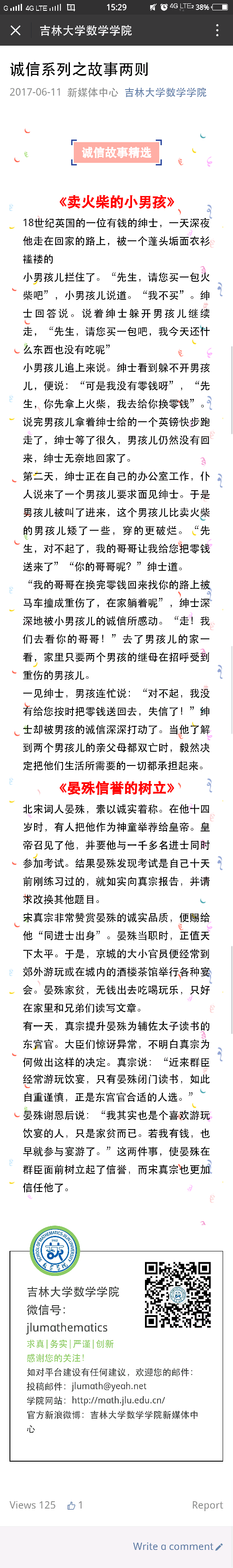 结合不同时段的诚信特征,采取对应宣传形式。充分发挥新媒体的作用,在微信平台及微博上每日推送诚信标语、小故事,增强老员工诚信意识。同时运用微信公众号,微博话题讨论,微信互动等形式,深入开展了诚信教育网络宣传活动,广泛宣讲了诚实守信事迹。