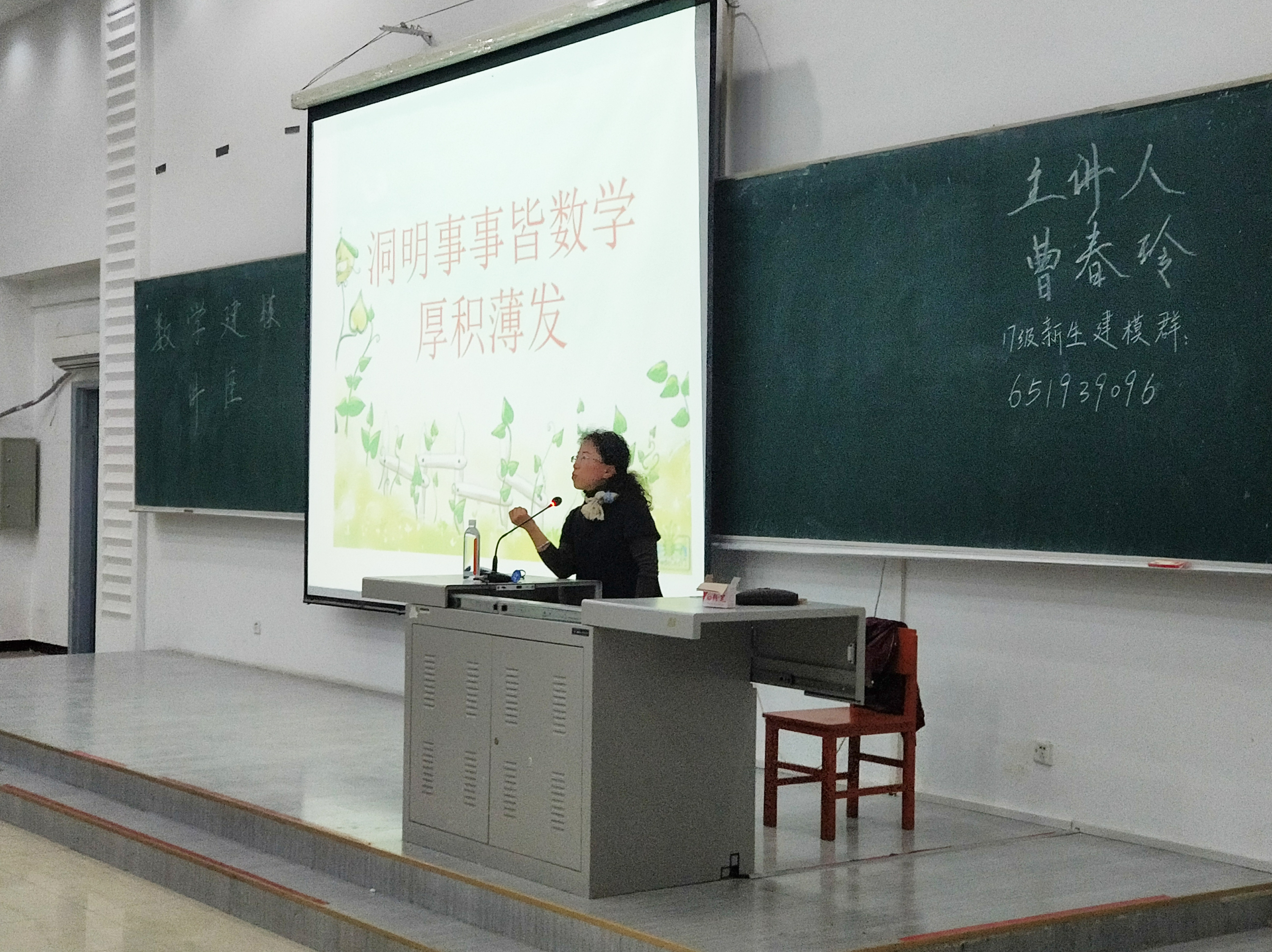首先,曹春玲老师从“为什么要学数学”、“数学和我们的关系”、“数学模型和我们的关系”三个方面引出数学建模与生活的联系。然后,老师通过分析近几年的建模试题,向新生们深入浅出地说明了数学建模中大数据的重要性。最后,老师向同学们介绍了美国老员工数学建模大赛的情况,员工们往年参加数学建模大赛的种种经历。