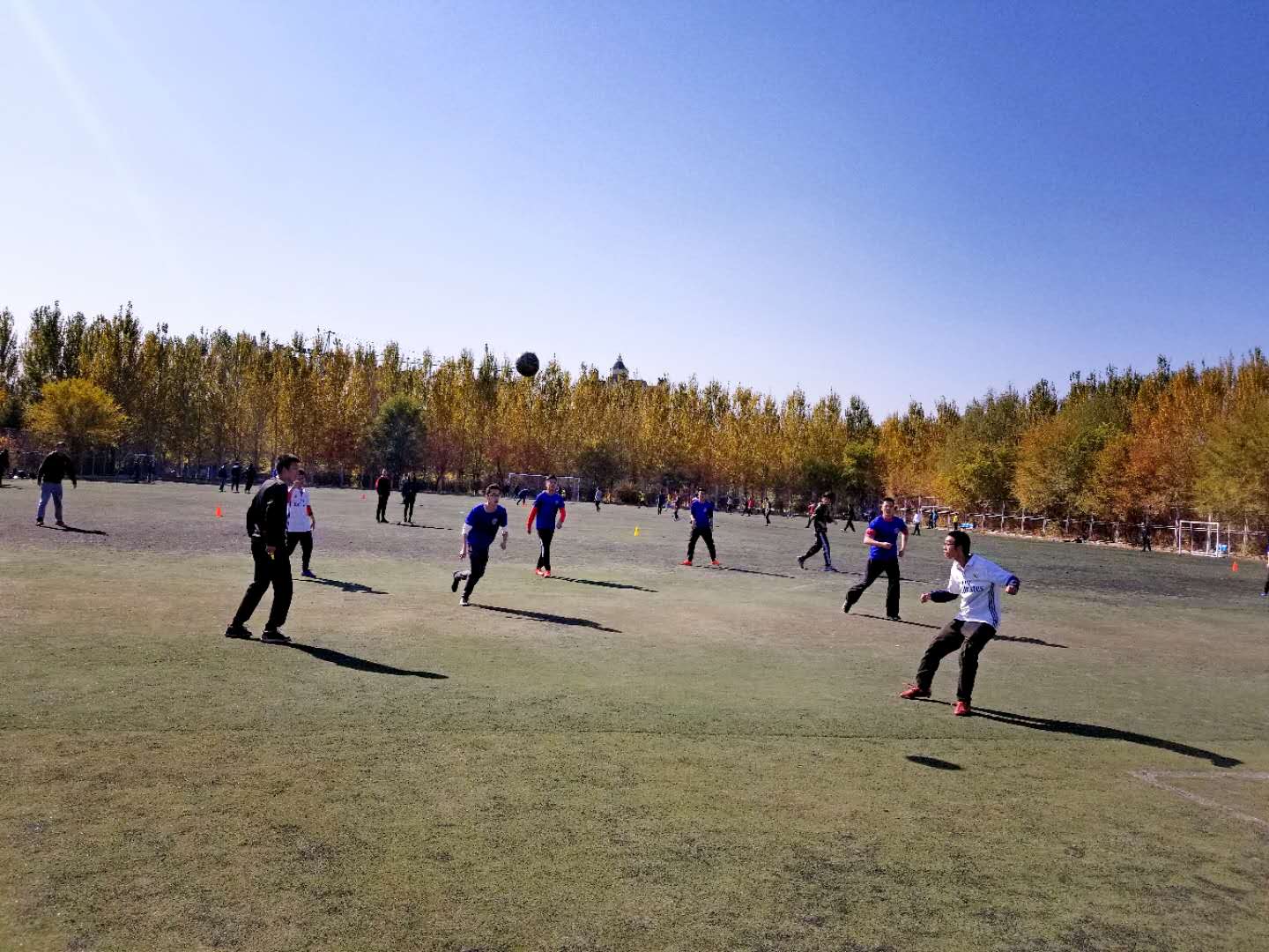本次比赛共有27支参赛队伍,分成A,B,C,D,E,F,G七个小组,每组小组赛阶段采用单循环赛制,小组赛结束后统计积分,根据积分高低排名;取七组各小组第一及老师组小组第二进入八强淘汰赛阶段,最终决出冠亚季军。足球场上,队员们尽力拼搏,奔跑如离弦之箭,喊声振奋人心。倒了,站起来;伤了,无所谓;进了,欢呼了。青春的活力在足球场上迸发,没有拘束,没有忧虑,欢声笑语才是青春的主旋律。流汗了,又风干了;流血了,又凝固了。球场上除了和足球在一起奔跑,一切都不在乎。