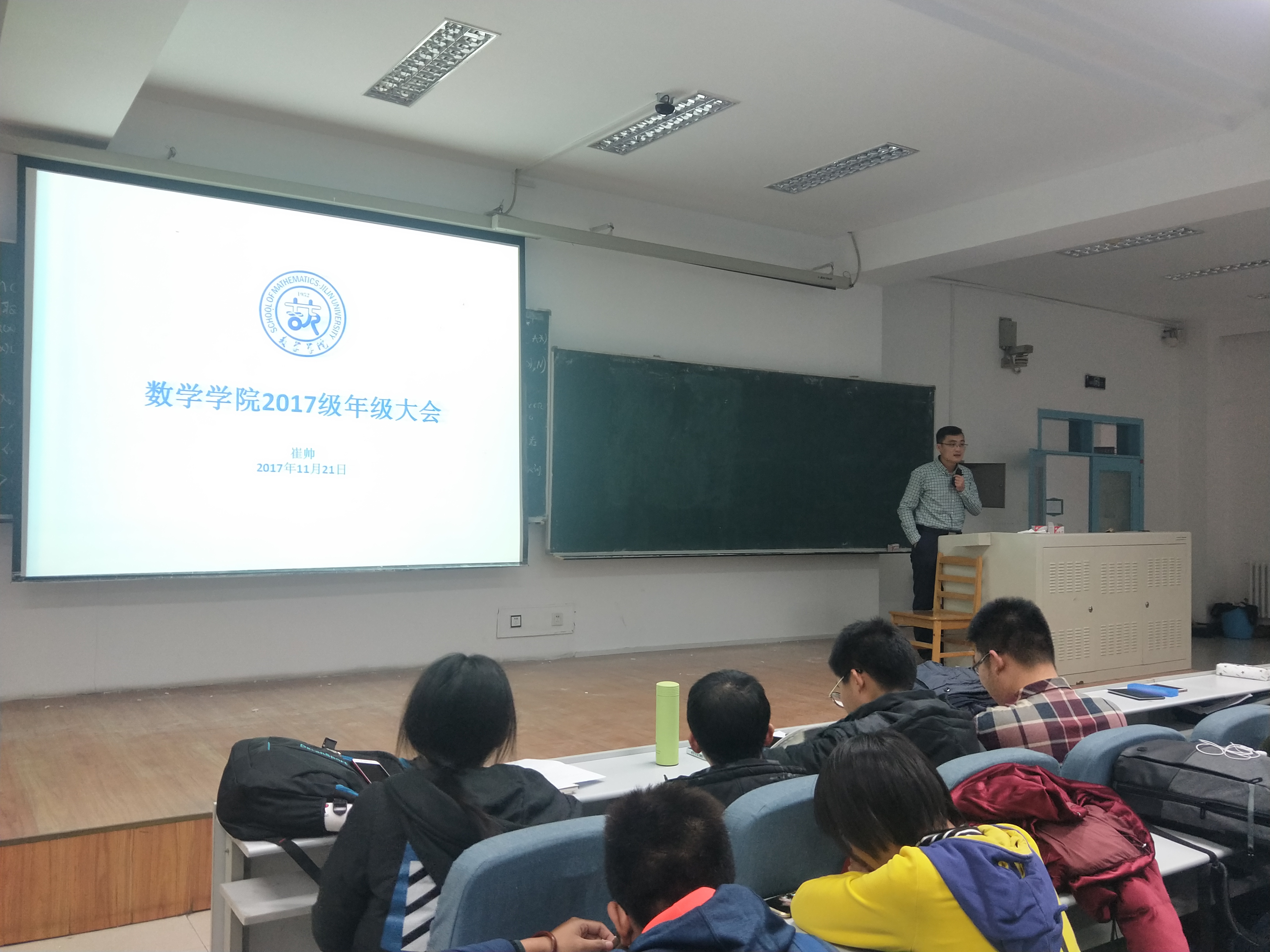 会上,崔帅老师首先向同学们讲解了本学期考试周、期末考试和放假时间安排,并要求大家从现在开始着手期末复习,充分利用好班级学习讨论小组,不断提高学习成绩;其次,简要介绍了数学专业的整体发展方向以及应该具备的相应条件;最后,要求同学们高度重视宿舍安全防火,并提醒同学们不要在清湖、宴湖冰面上行走。
