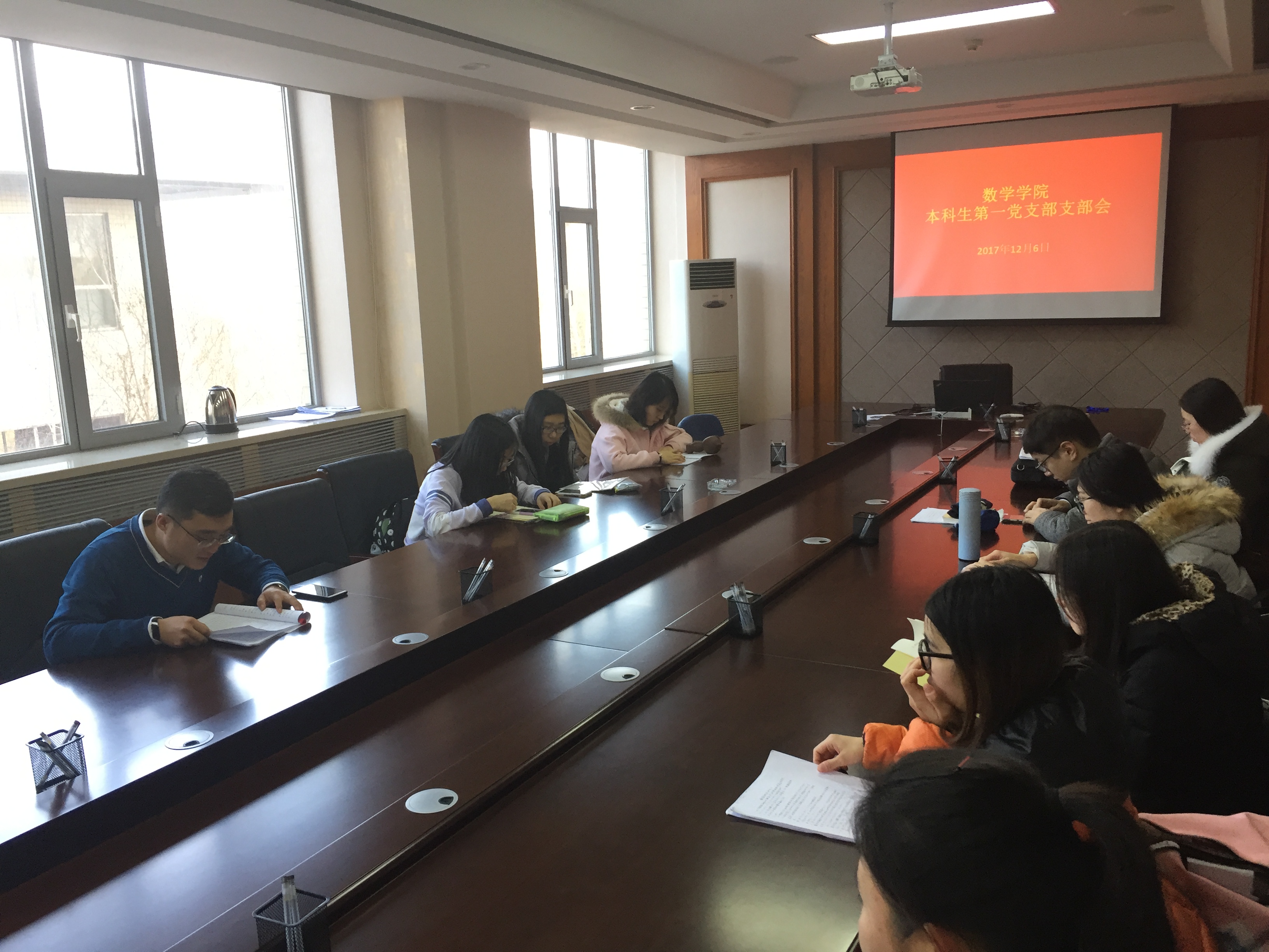 为加强党支部建设,深入解读十九大报告,学习了解十九大报告精神,公海gh555000aa线路检测第一党支部、第二党支部全体成员于12月6日分别在数学楼三楼会议室和一楼报告厅召开了支部大会。支部大会分别由支部书记崔帅以及李庚主持。