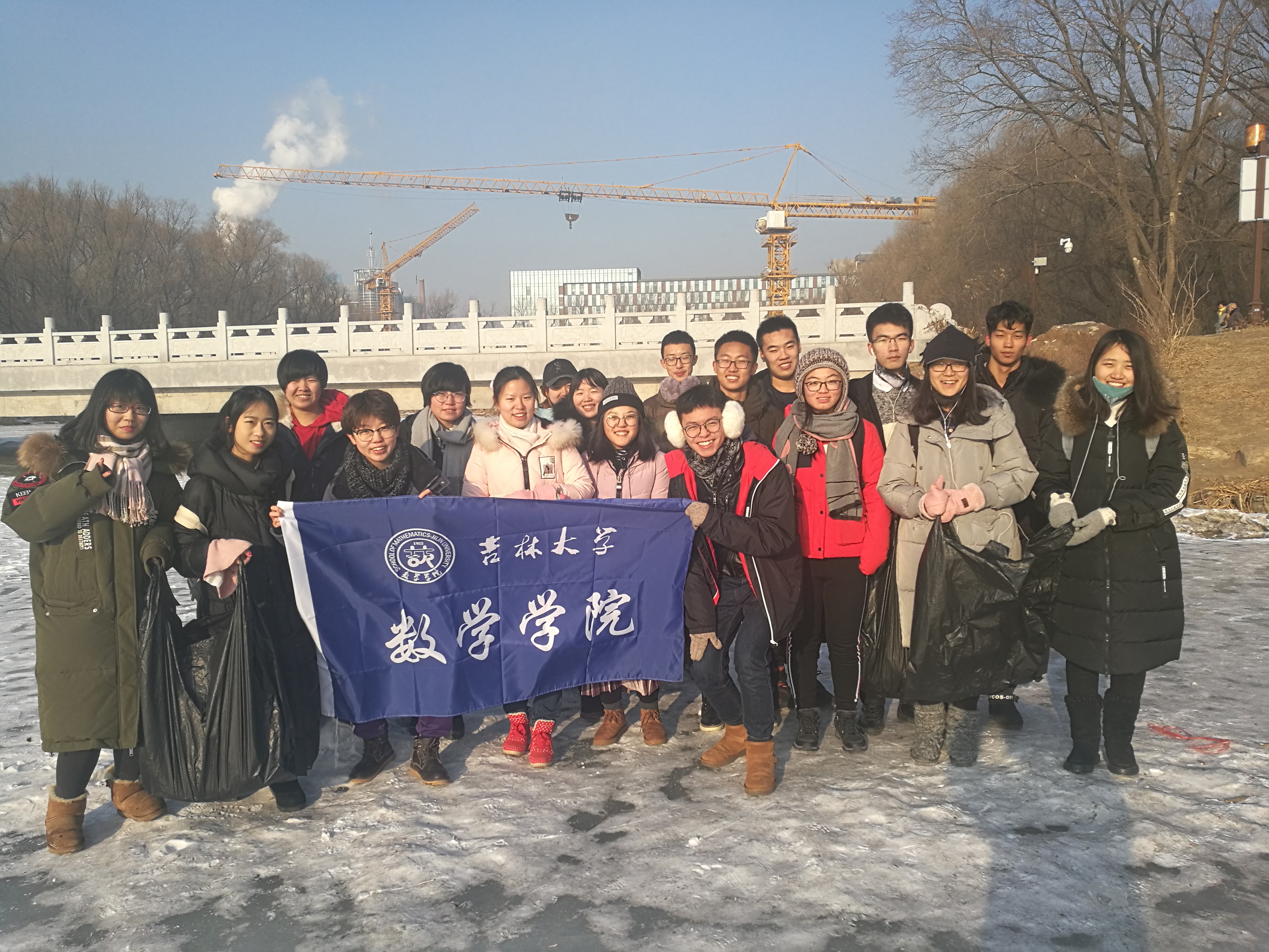 当日上午九点我们以班级为单位在南湖公园集合,虽然已是北方深冬,寒风凛冽,但丝毫未削减同学们志愿为环保出力的热情。我们分成了四个小组,每组一个垃圾袋,分区域对南湖公园进行简单清扫。将垃圾集中到自带的垃圾袋里送到指定的垃圾回收点。很多同学的双手已经冻得发红,但依然坚持捡垃圾。经过一个上午的劳动,俩个大垃圾袋被装得满满的。正午的阳光打在每个人身上,卸下了我们一身的疲惫与寒冷。最后我们在南湖的冰面上合影留念,纪念着这个集体有意义的一天。