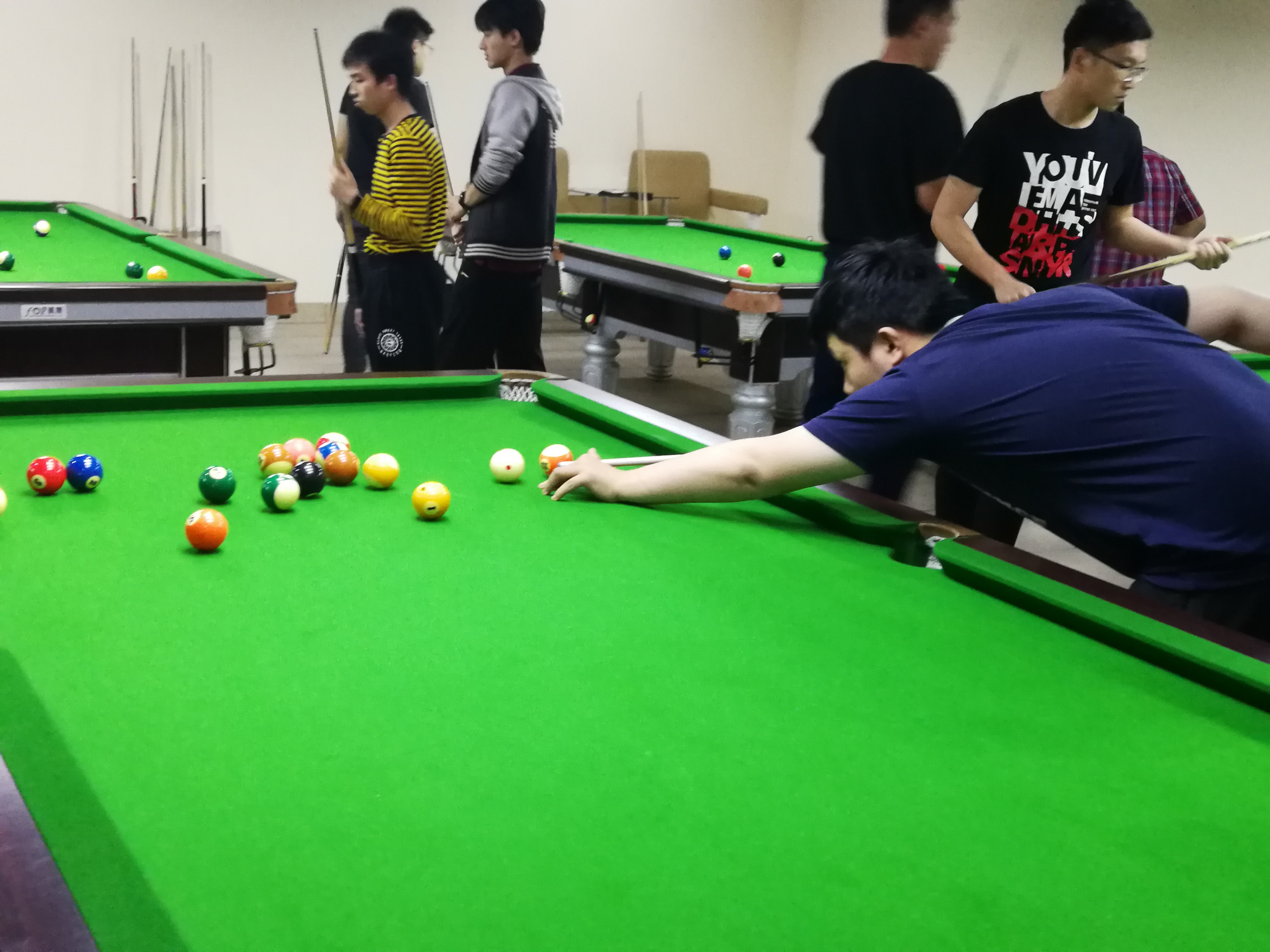 5月19日下午一点钟,公海gh555000aa线路检测台球赛在日新楼四楼的台球厅内正式开始,首轮24进12与次轮12进6的比赛并无太大波澜,几大夺冠热门均轻松战胜各自对手晋级下一轮。