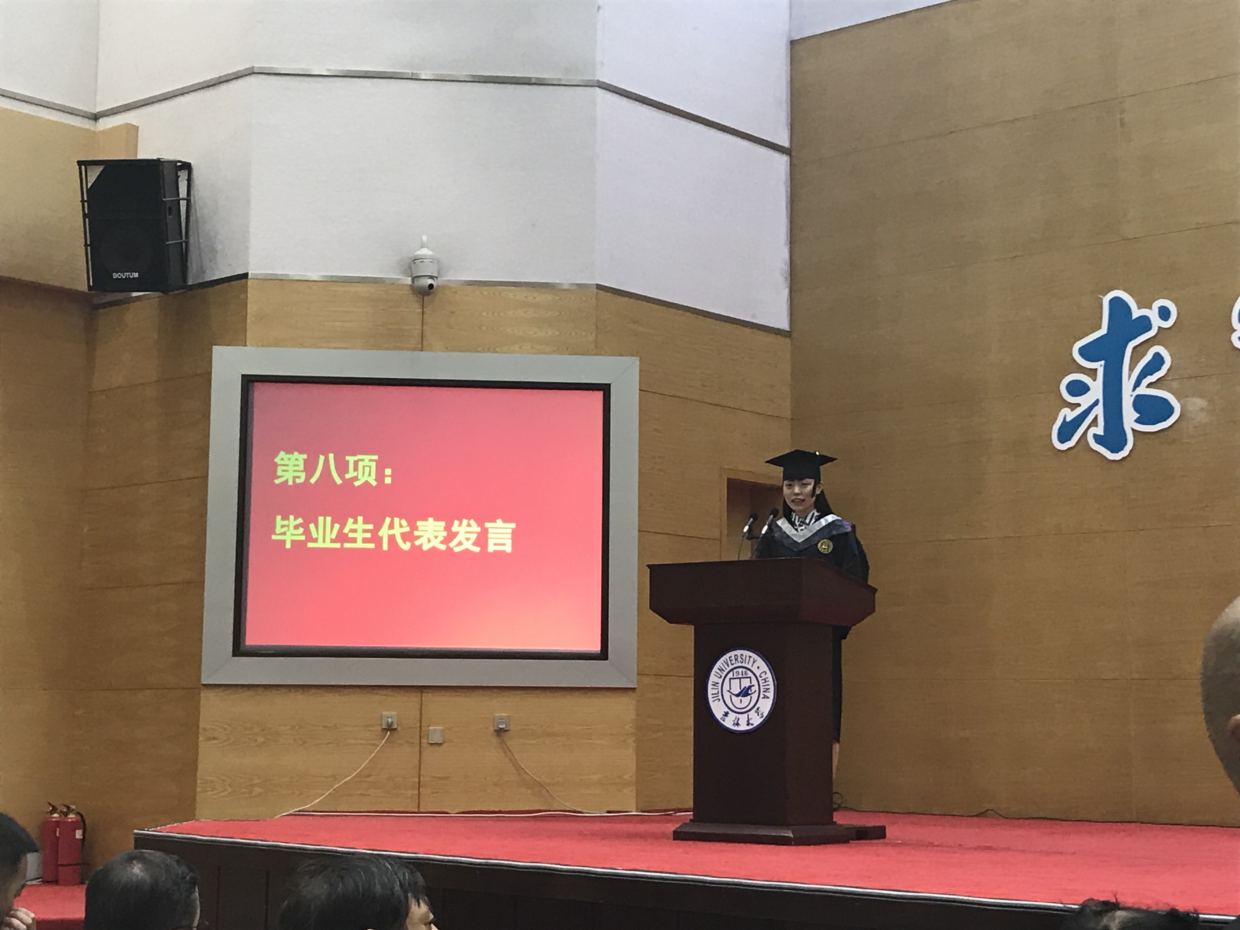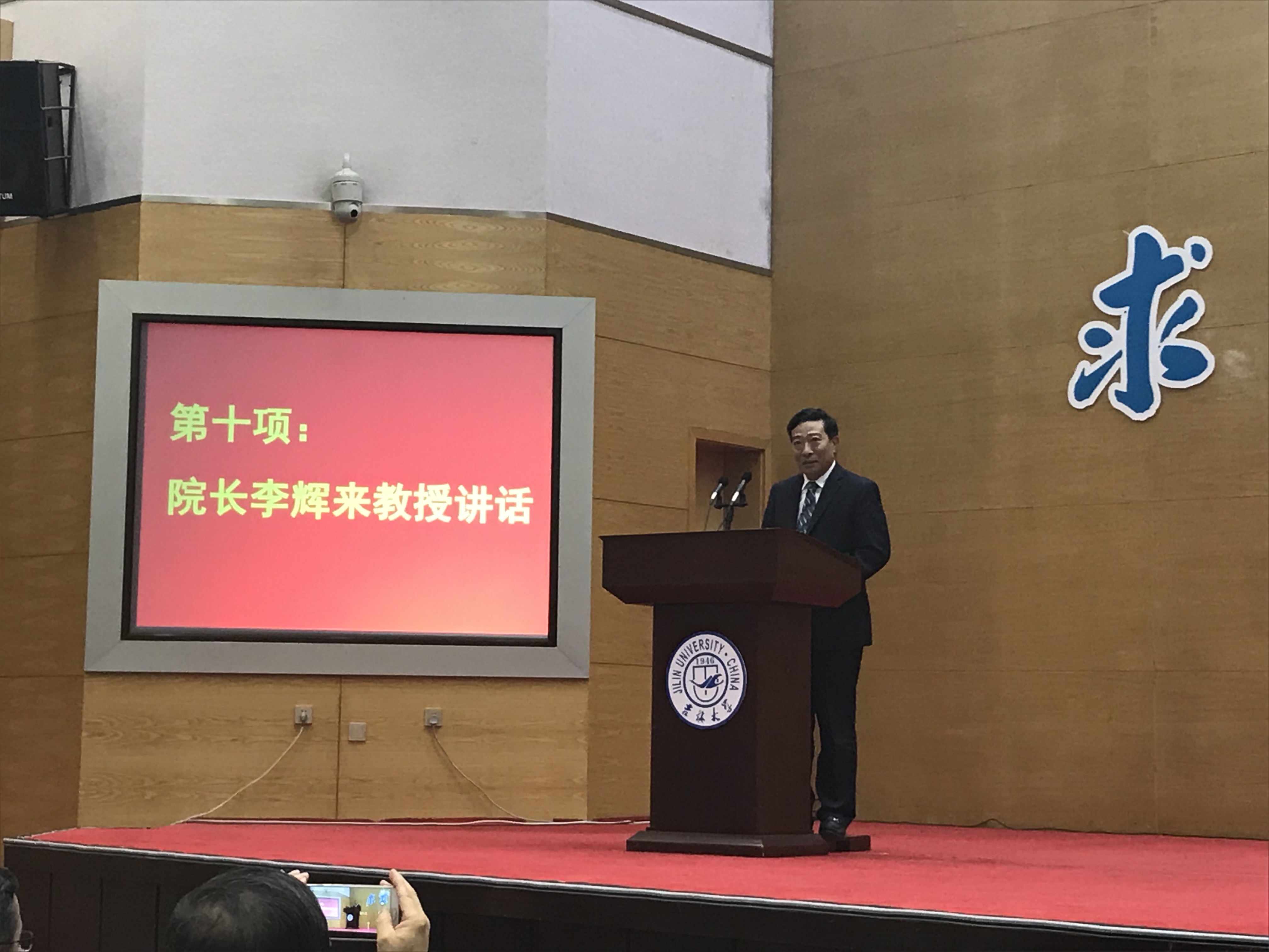 大会首先由副经理王德辉教授和史少云教授老师分别宣读了获得学士学位、硕士学位以及博士学位的毕业生名单。接着,党委副书记王欢老师宣读2018届优秀毕业生表彰决定,并党委书记李晓光教授为获奖代表颁发证书。