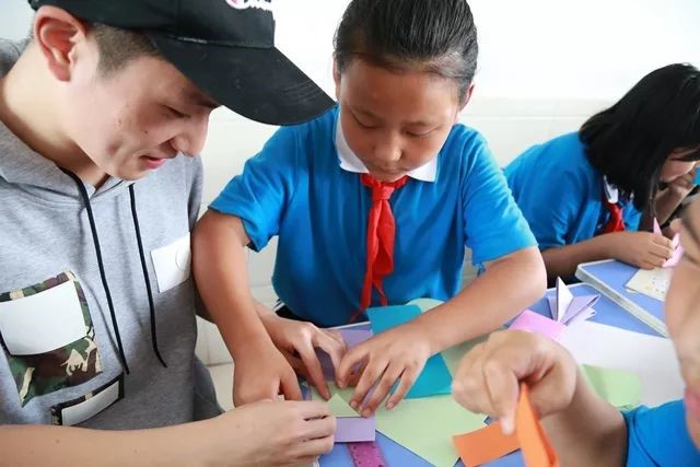 今天是支教的第四天,在支教队友的有序组织下,同学们开始了新的一天的学习。最受孩子们喜欢的课之一就是表演课,支教队员为同学们准备好了小故事,诗篇或是绕口令。先让孩子们自己挑选文本,然后随机抽取情绪卡和背景音乐,上台表演的小朋友要以选到的情绪配上对应音乐来朗读自己的文本,这些文本都是孩子们精心挑选,或有趣,或感人。孩子们也都特别想表演,只好用剪刀石头布的办法来决定,这样才像是孩子们的公平游戏。小朋友们虽然不能完美地把控自己的情绪,但是朗读起故事来都有自己的感情和语调,抑扬顿挫,表现地特别好,作为小朋友已经非常棒了。支教团还安排了一节故事课,支教队员们决定用几个关于勤奋好学、修身养性以及与四大名著中著名的三国演义有关的成语典故作为本节课的分享。有的小朋友知识面非常广,了解不少成语的含义及来源,课堂上积极举手跟其他小朋友分享自己知道的故事。也有很多小朋友觉得这些成语故事让他们有所收获,在纸上工工整整地记了笔记。而在自然课上,支教队员准备的主题是看云识天气,给同学们介绍了层积云、卷云、积雨云、雨层云、冷锋云、暖锋云等几类云的特点和可能预见的天气。队员的PPT做得非常精致,小朋友们一边欣赏美丽多变的云朵,一边认真地听着这些小知识,时不时也会提出自己的疑问。由于小朋友们都聪明机灵,简单的问题已经掌握得很好,最后一节的数学课,支教队员决定给孩子们拓展一下稍微难一点儿的问题。以牛吃草,自动扶梯等例子给同学们讲解了几种较为复杂的思路。最活跃的莫过于手工课啦,支教团的队员们齐上阵,带着小朋友们一起折纸,有心、千纸鹤、玫瑰花等小作品。令支教队员十分感动的是,好多小朋友都争着抢着把自己手工课的成果写上自己的名字送给大哥哥大姐姐们留作纪念。时间总是在不知不觉中悄然流逝,转眼间,支教团已经和孩子们度过了几天的时光,有的小朋友非常懂事,也有的小朋友比较调皮,玩的不开心会生气,会需要大哥哥去哄,不管怎么说,这一切的经历过后,小朋友们对大哥哥大姐姐已然有了很深的感情。