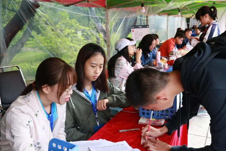 阴雨连绵也无法阻止新同学前来报到的脚步,同样无法熄灭老师和学弟学妹的热情。工作人员帮助新生们完成了入学签到、递交材料、领取钥匙和银行卡等报道流程,并和新同学们热情交流,认真地解答他们的疑问,让新生们尽快适应老员工活。