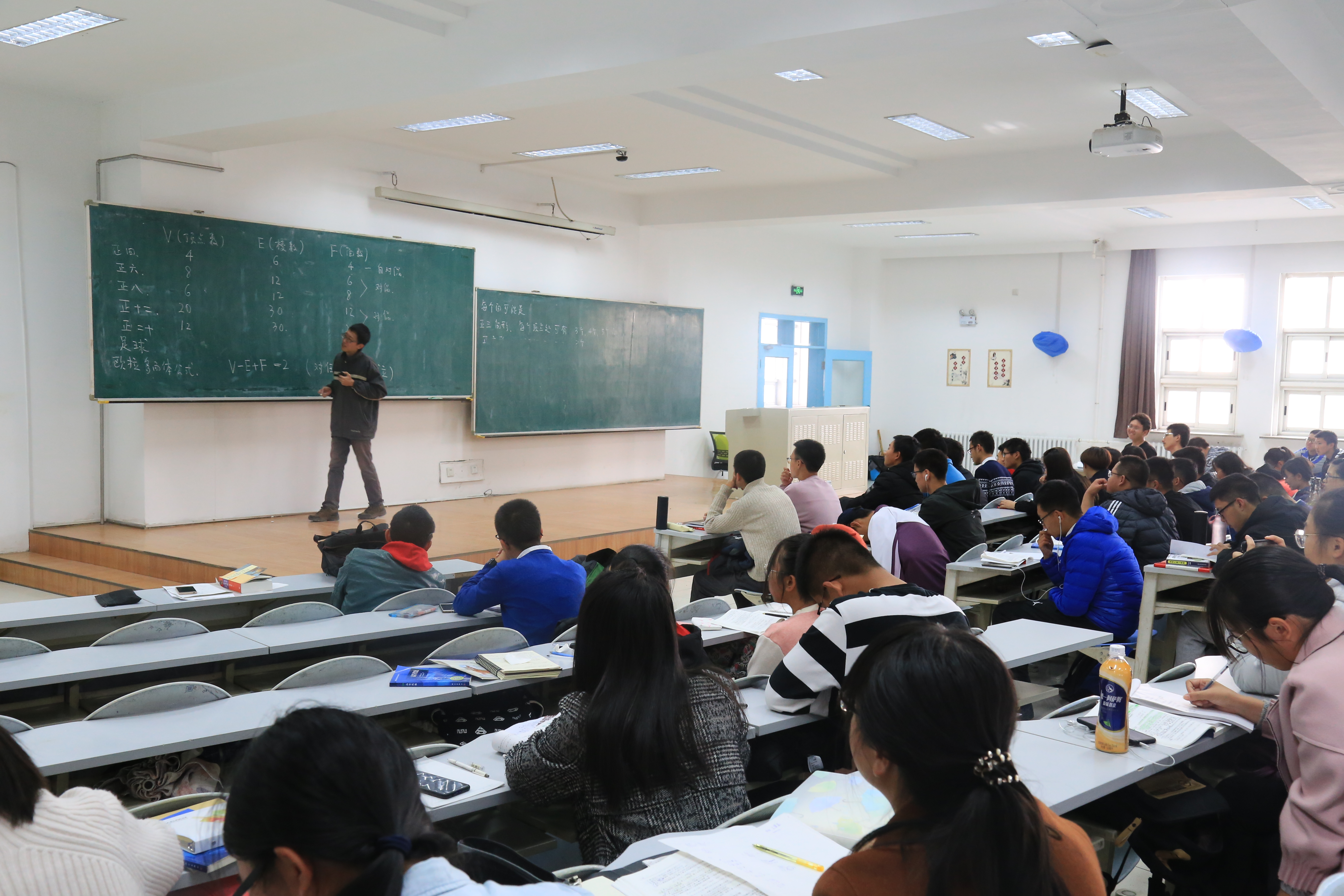 讲座的第一部分由生云鹤教授主讲。生云鹤教授以“不忘初心”为主题,鼓励同学们要坚持自己最初入学时的信念,坚持自己的志向,坚持自己对于数学的热情,不忘初心,尽心尽力地把大学之路走好。在为新生们奉上开学以来第一碗“心灵鸡汤”后,生教授从空间几何解析中的内外积知识入手,以员工刚刚了解的三维向量空间上的内外积知识为基础,引导员工理解n维向量空间、独立思考更高维数向量空间上的内积、外积定义。生教授在讲座中强调,要学好数学,就要学会理解数学,特别要学会直观地理解。生教授还倡导同学们在日常学习中积极讨论。讲座现场,同学们两两一组,在生教授的指导下对于n维向量空间中内积的定义做出激烈讨论。