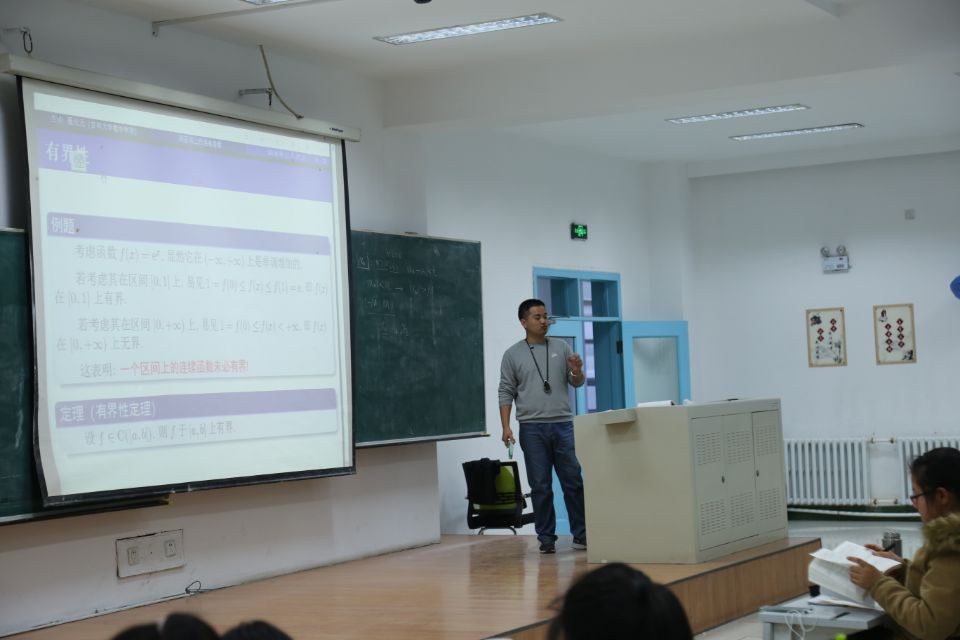首先,聂元元老师带领大家回顾了连续点的定义、左连续,右连续、连续函数与连续区间等相关定义及知识,为此次讲座进行知识“热身”;接着,进入到本次课堂的主要环节——闭区间上连续函数的性质:有界性;最值性质;介值性质;一致连续性,同时举出一些例题来加深大家对知识的理解;最后,老师为大家带来一些实际应用问题,让大家能学以致用,更好地消化吸收今天的内容。聂老师语言幽默风趣,不时举出一些生动形象的例子,让同学们在学习知识之余,也体验到了学习数学的快乐所在。