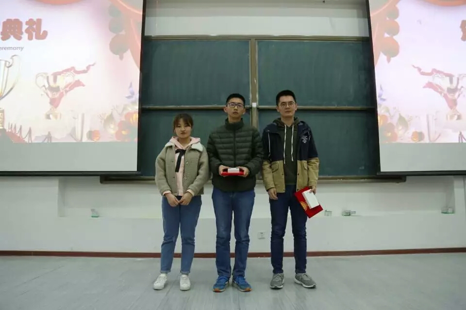 本次比赛参赛选手讲课风格各具特色,有的同学举例丰富、贴近生活,有的同学慢条斯理,从容不迫,有的同学随性恣意,别具一格;讲课内容亦是五花八门,数学分析,高等代数,空间解析几何,常微分方程等等,选手们思路清晰,表达清楚到位,并有自己的独到见解;讲课形式丰富多样,手写板书,板书或工整规范,或随性恣意;PPT辅助,PPT简洁明了,美观大方。讲台上的同学们神采奕奕,自信从容,大方得体,颇具老师风范。讲台下的观众亦是全神贯注,仔细聆听,收获颇丰。现场还设有趣味问答环节,同学们热情高涨,紧张思考,积极响应,纷纷举手回答问题。各位评委秉持着公平公正的原则为各位选手进行现场打分,评选出一等奖一名(17级马琰)、二等奖一名(18级吴岳霖)、三等奖两名(16级黄海涛 18级何易繁),分别由团委副书记郑旭东、团委副书记兼社联主席赵雯晗、新媒体中心主任兼员工会副主席王思梦为获奖选手颁奖。最后,各位评委,获奖选手及工作人员合影留念。至此,公海gh555000aa线路检测讲课大赛完美落下帷幕。