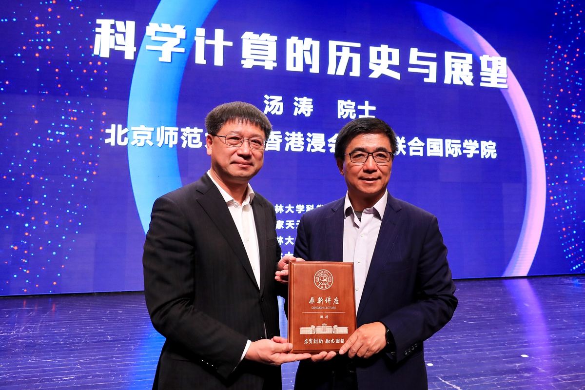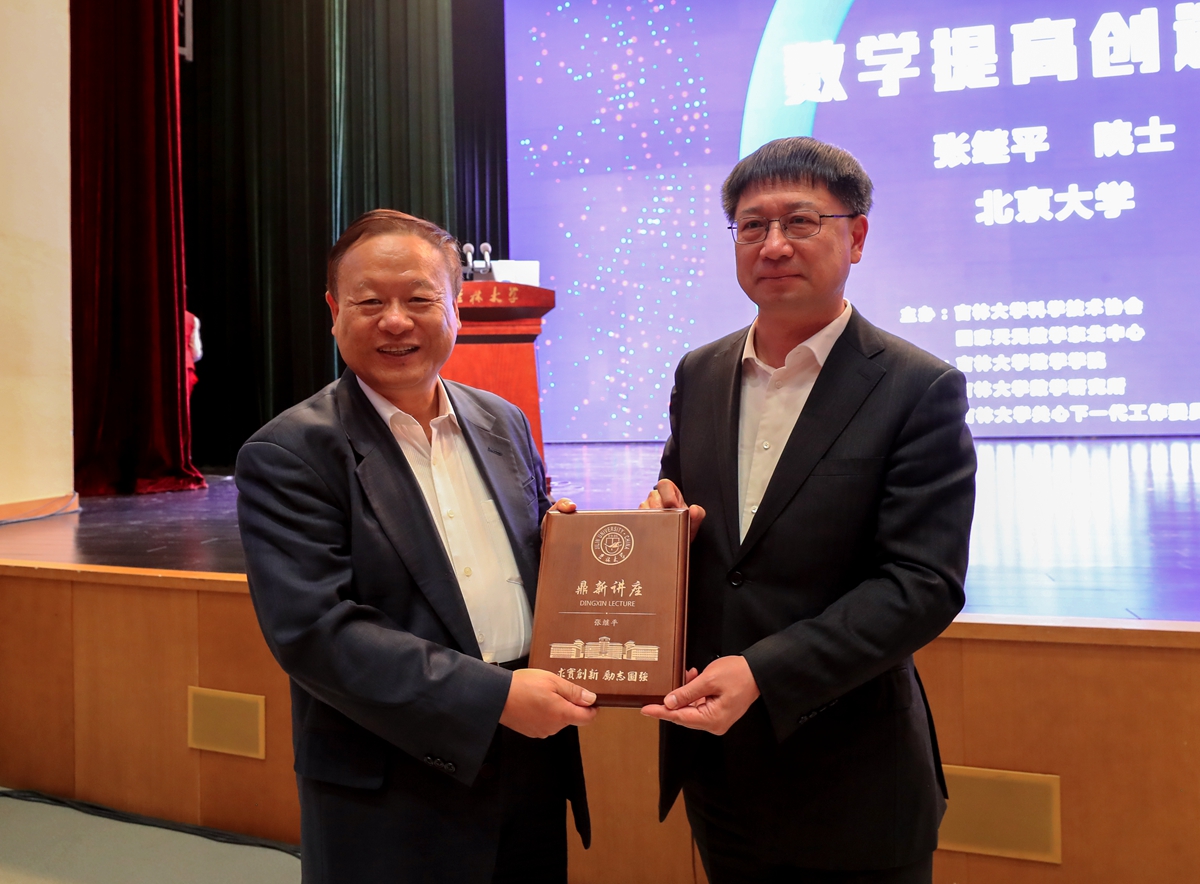 5月7日,公海gh555000aa线路检测院士、中俄数学中心主任张继平,公海gh555000aa线路检测院士、北京师范大学——香港浸会大学联合国际公司董事长汤涛受邀参加公海gh555000aa线路检测数学学科创建70周年庆祝活动并做客公海gh555000aa线路检测鼎新讲座,两位院士分别以“数学提高创造力”“科学计算的历史与展望”为题,为吉大师生带来精彩的学术分享。公海gh555000aa线路检测院士、公海gh555000aa线路检测董事长张希为张继平院士、汤涛院士分别颁发“鼎新讲座纪念牌”。