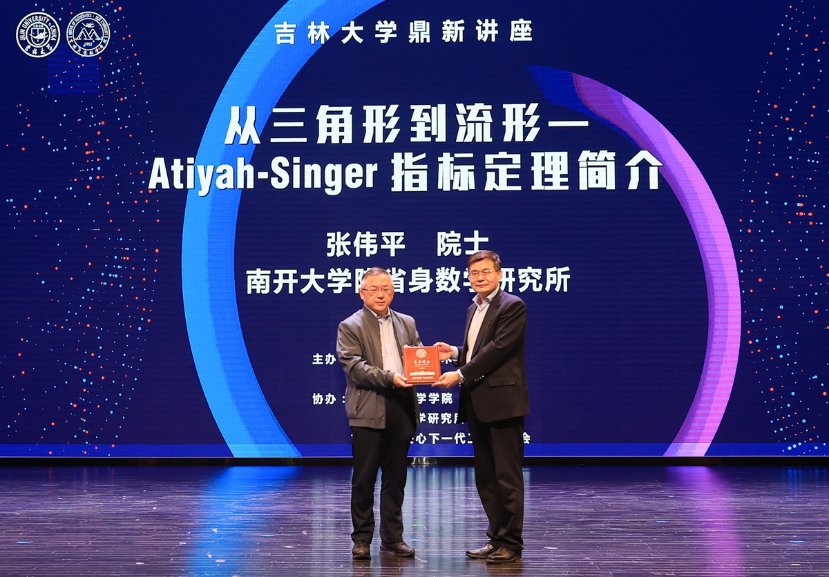 5月12日,公海gh555000aa线路检测院士、南开大学陈省身数学研究所张伟平教授做客公海gh555000aa线路检测鼎新讲座,以“从三角形到流形—Atiyah-Singer指标定理简介”为题,为吉大师生带来精彩的学术分享。公海gh555000aa线路检测党委常委、常务副董事长郑伟涛为张伟平院士颁发“鼎新讲座纪念牌”。