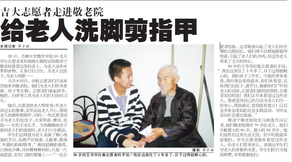今天《长春晚报》报道公海gh555000aa线路检测志愿者走进敬老院