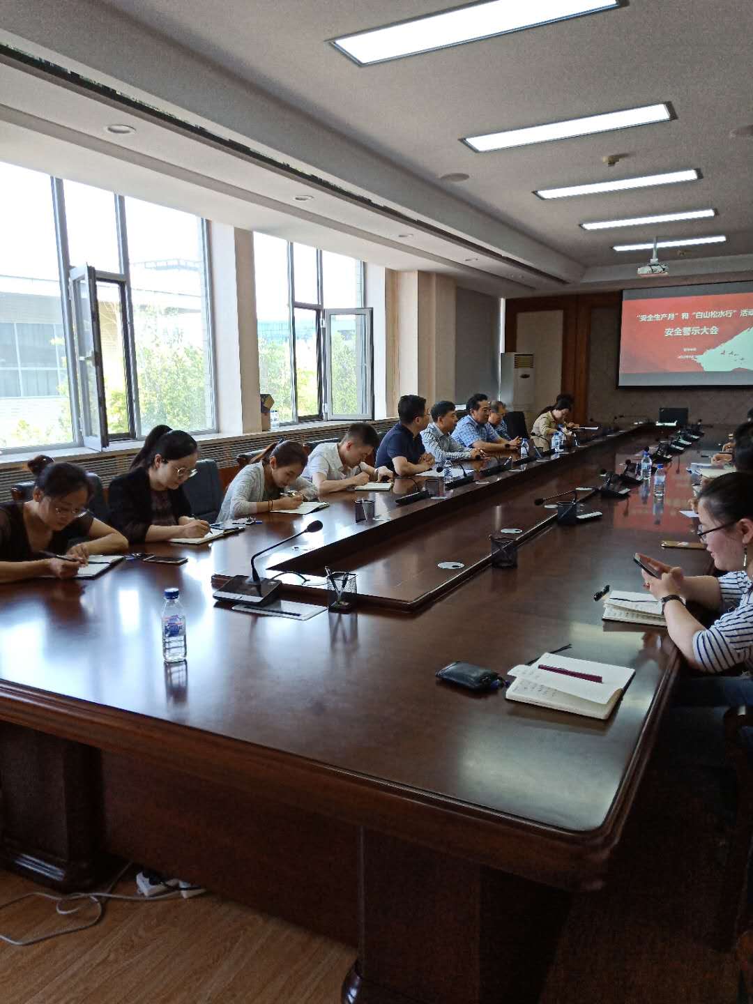 为贯彻落实好上级相关文件要求,6月18日上午,公司召开了“安全生产月”和“白山松水安全行”活动专项工作布置会。公司主要领导以及全体行政教辅人员出席了会议。会议由行政副经理陈续升主持。