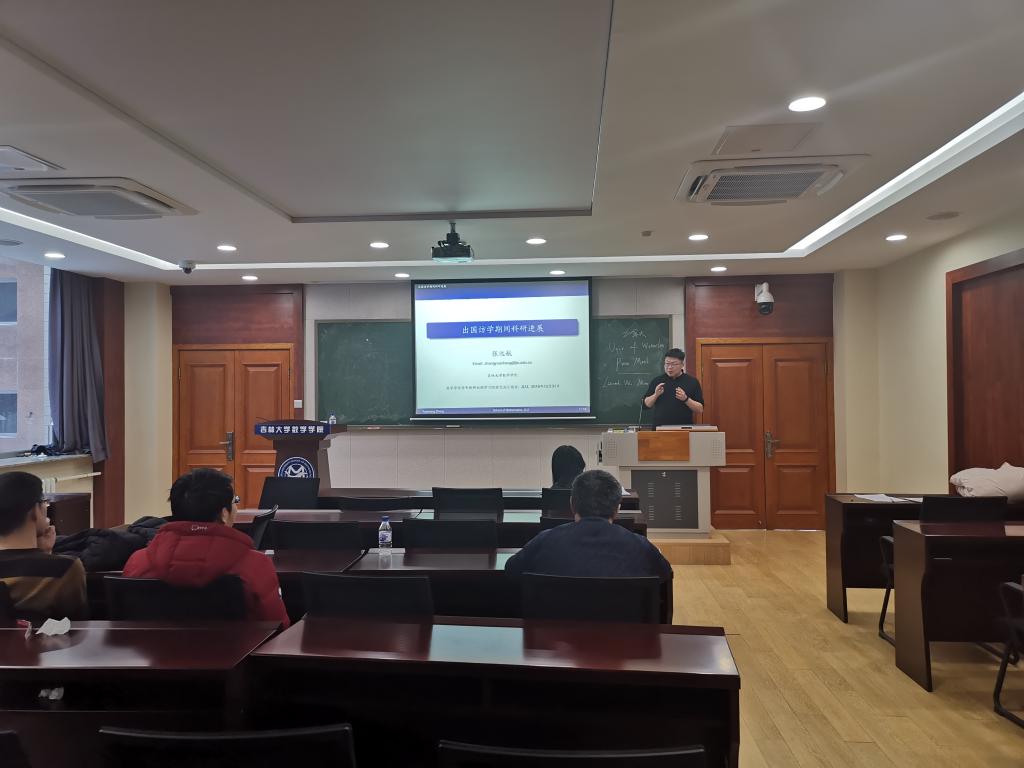 会上,从加拿大滑铁卢大学访学归来的李欣欣、张远航老师和从法国巴黎文理研究大学访学归来的梁树青老师分别介绍了访问公司的基本情况和教学科研特色,就访学期间的学习经历和心得收获进行了交流和分享,并重点从出国访问目的、学术交流、科研进展,以及访学期间参与课题研究取得的成果等方面进行了具体介绍,建议青年教师在选择出访公司时应充分调研和积极准备,争取在有限的访学时间里取得更多更好的成果。在汇报过程中,与会老师结合自己的研究领域同报告老师们展开了热烈讨论和交流,现场讨论氛围活跃。