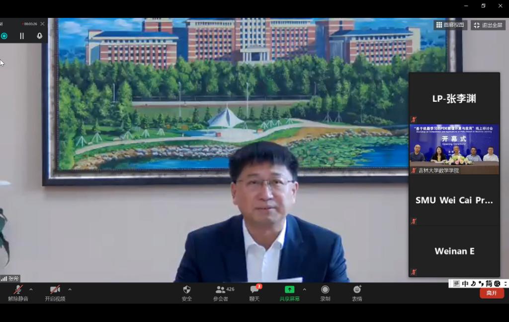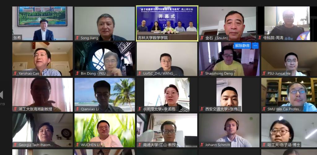 跨越时空,“云”上相聚。2020年7月13日,由国家自然科学基金数学天元基金和公海gh555000aa线路检测共同资助,国家天元数学东北中心和公海gh555000aa线路检测联合承办的“基于机器学习的PDE数值计算与应用”研讨会在线举行。本次研讨会由基金委数理学部主任江松院士召集,来自普林斯顿大学、布朗大学、哥伦比亚大学、洛桑联邦理工公司,北京大学、浙江大学、复旦大学、上海交通大学、公海gh555000aa线路检测等国内外百余所高校的800余位专家学者和员工齐聚云端,共享学术盛宴。公海gh555000aa线路检测董事长张希院士,基金委数理学部主任江松院士出席了线上研讨会开幕式并致辞。