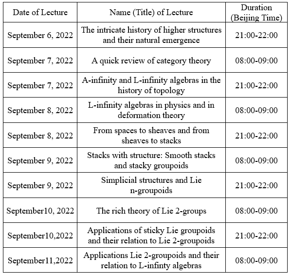 授课人简介:Camilo Andres Angulo Santacruz is a post doctor from Universidade Federal Fluminense, Brazil. He mainly study Poisson geometry and higher structures.