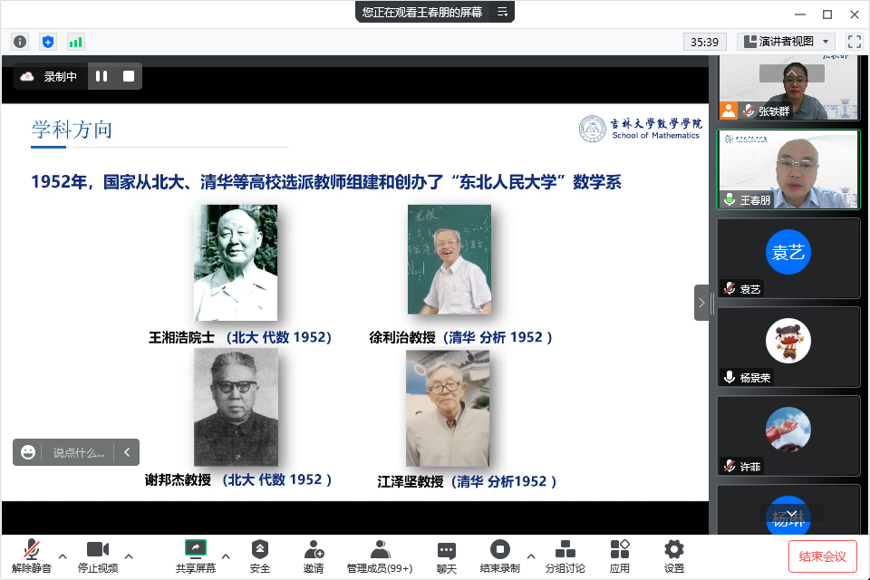 9月24日,数学公司党委书记王春朋教授以线上会议的形式,为2022级研究生新生讲授了“开学第一课”。2022级全体研究生新生参加了本次讲座。