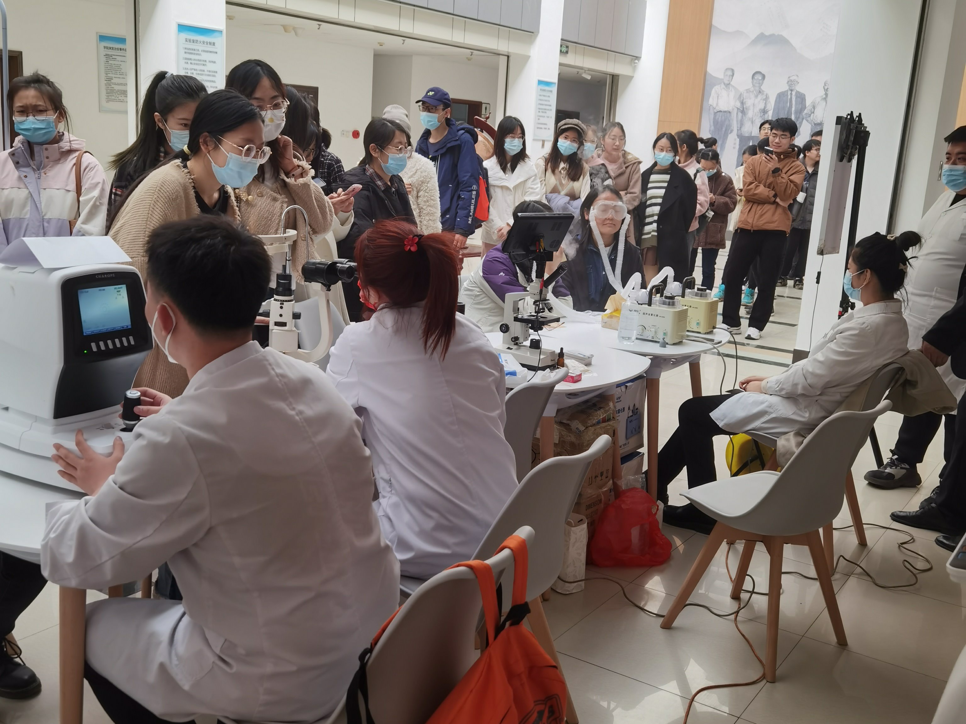 活动现场邀请到屈光手术科贾主任为大家科普眼健康知识,希望通过眼健康知识讲座、现场视力检查等方法,让员工了解自己眼睛的基本情况,关注眼健康问题。贾主任就日常生活中的爱眼护眼知识进行了解说。随后,现场为员工们进行了验光、螨虫、裂隙灯等眼健康检查,让眼干的员工们体验了雾化熏蒸等项目。检查过程中,对于部分存在近视、散光等问题的员工,医生和验光师给予了针对性的医学检查建议,对早期视力员工及时进行了如何干预的指导。