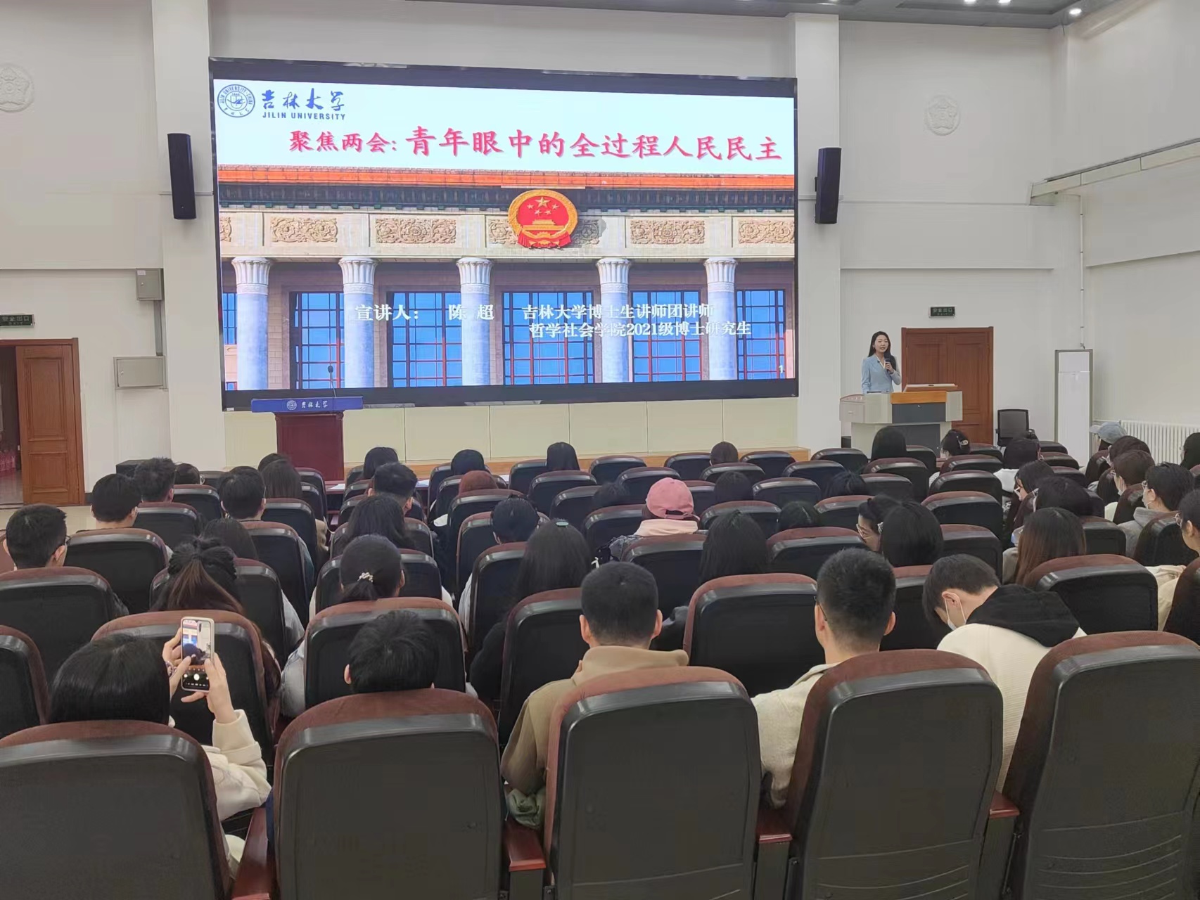 在本次宣讲中,陈超首先带领大家学习了习近平总书记在全国两会上的重要讲话精神和全国两会精神,以两会制度作为中国式民主的生动窗口为切入点,讲述了我国两会制度的由来与发展,并从政治、理论与实践层面,对中国式民主道路的核心特征——全过程人民民主进行了详细讲解。其次,陈超结合自己参与中国共产党公海gh555000aa线路检测第十五次代表大会的经历,以青年视角道出中国特色社会主义全过程人民民主是以人民当家作主为本质内涵的真正民主。最后,陈超鼓励大家要学习贯彻习近平新时代中国特色社会主义思想,将学习两会精神与贯彻落实党的二十大精神结合起来。