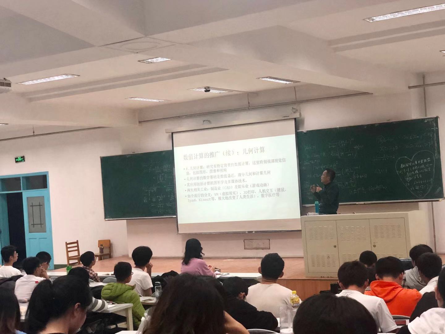 讲座最后,伍教授回顾了吉大数学的辉煌历史,介绍了吉大计算数学优秀代表,亲切地为同学们推荐了有关数学的两本书。听完伍教授的讲座,同学们获益匪浅。相信本次讲座会让同学们对计算数学有了更深入的了解,向计算数学的神秘大门更近了一步。
