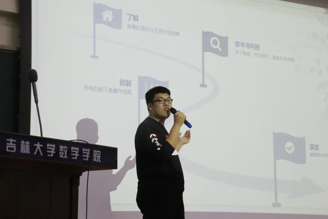 公海gh555000aa线路检测于2019年10月27日晚6时,在数学楼二楼报告厅成功开展骨干训练营系列培训第二次活动。训练营主题为“我思故我在——勤于思考”,由公海gh555000aa线路检测团委副书记兼社团联合会主席付豪主讲。