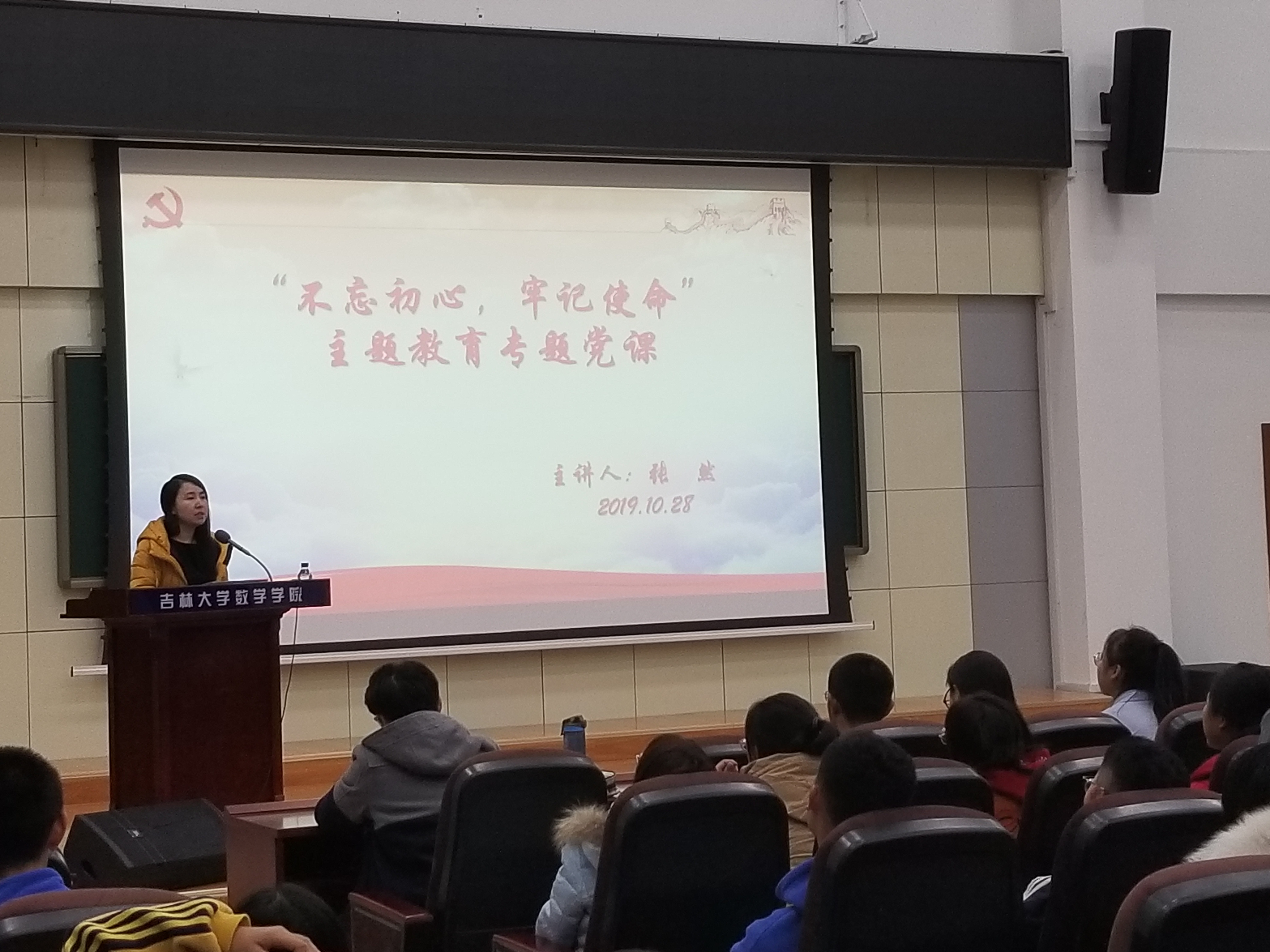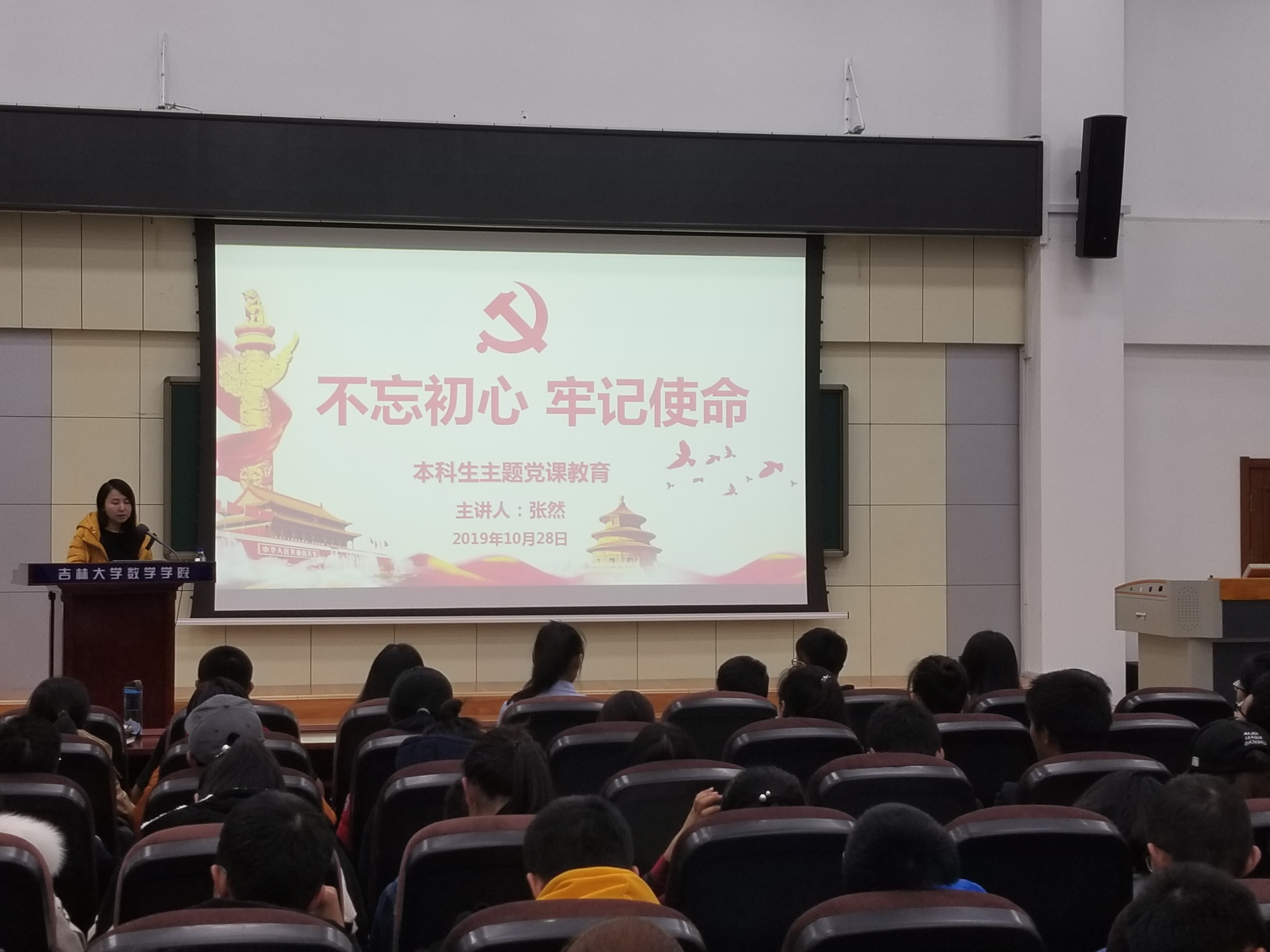 为贯彻落实中共中央的工作部署和《公海gh555000aa线路检测开展“不忘初心、牢记使命”主题教育实施方案》的具体工作要求,公海gh555000aa线路检测于2019年10月28日下午七点,在数学楼报告厅进行了面对19级全体同学的党课。本次党课由数学公司党委书记张然教授主讲。