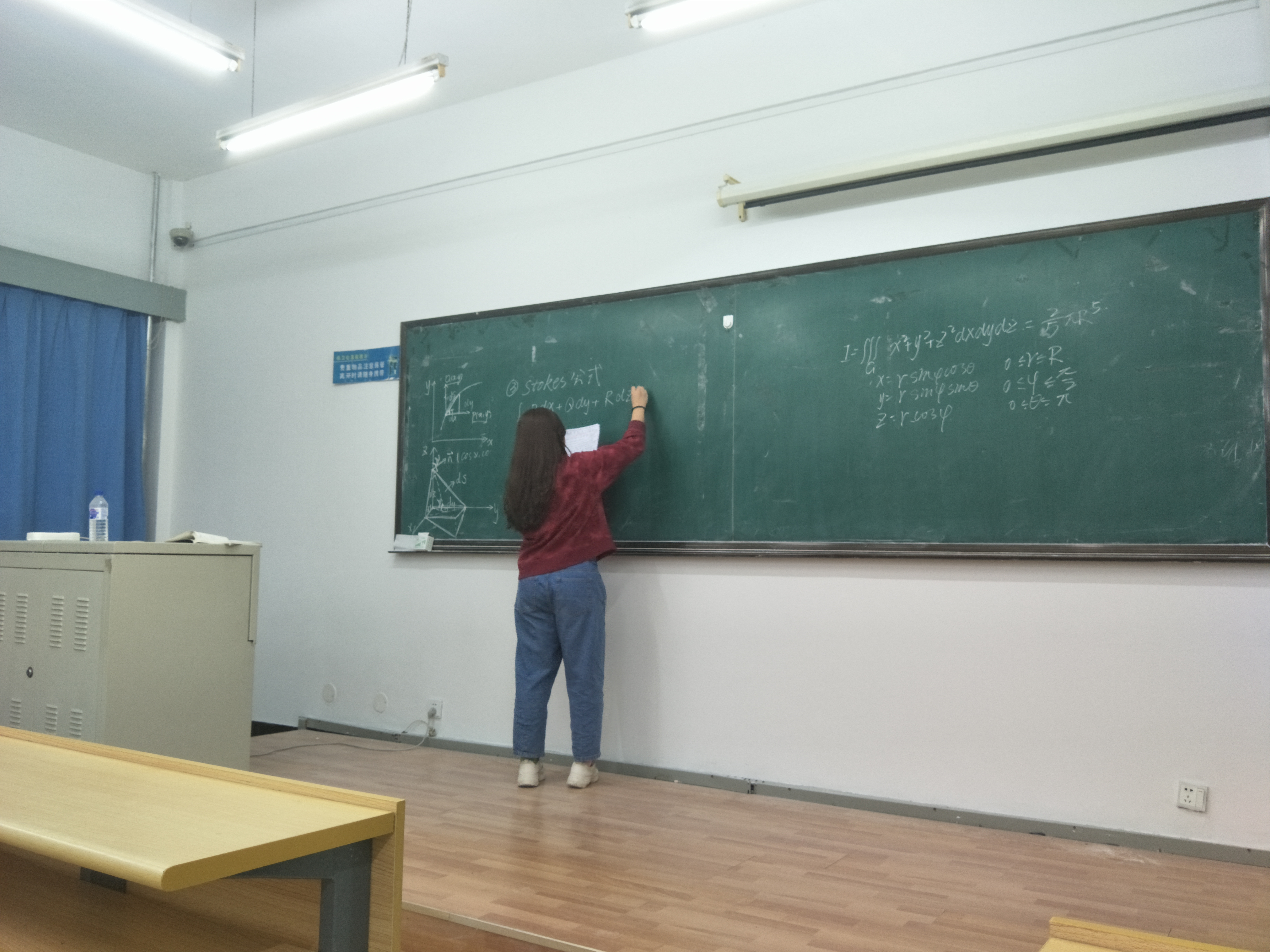 活动于18:30开始,首先由徐雨辰同学向大家介绍重积分的计算。徐雨辰同学讲述了(1)化重为累,(2)变量替换两种求解重积分的方法,并且每种方法都是由二重积分推至n重积分,由易到难,使同学们能够更好地理解求解方法。随后,韩孟雅同学向大家介绍了曲线积分与曲面积分的知识。讲解过程中,韩孟雅同学由定义到性质再到计算,对整个知识框架做了完整的概括,由表及里,由浅入深,带领大家逐步探索这一版块的内容,同时,韩孟雅同学与听课的同学们积极互动,及时了解大家对她所讲内容的理解情况并调整讲课节奏,同学们均表示受益匪浅。最后,曲俏莹同学向大家讲述第二型曲线积分和第二型曲面积分的内容,一部分的内容与前两部分相比较复杂。曲俏莹同学从场这一概念讲起引入第二型曲线积分与第二型曲面积分,不仅介绍了其定义性质及计算方法,而且对第二型曲面积分与第一型曲面积分的差别与联系做了总结,帮助同学们的更好地理解。