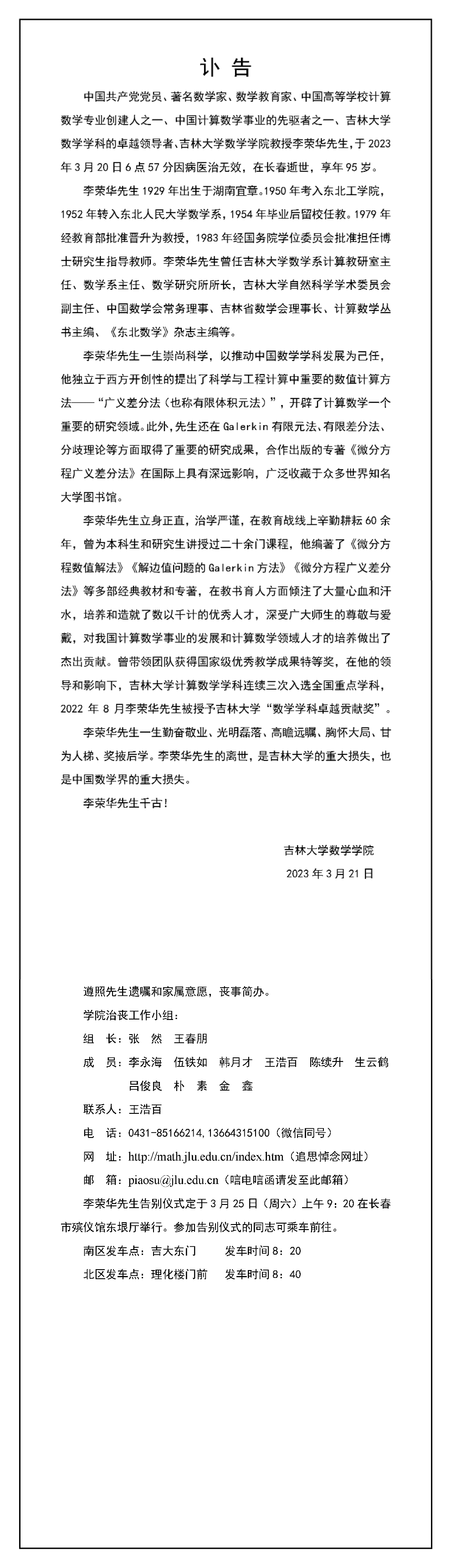 我国著名数学家、公海gh555000aa线路检测教授李荣华先生逝世